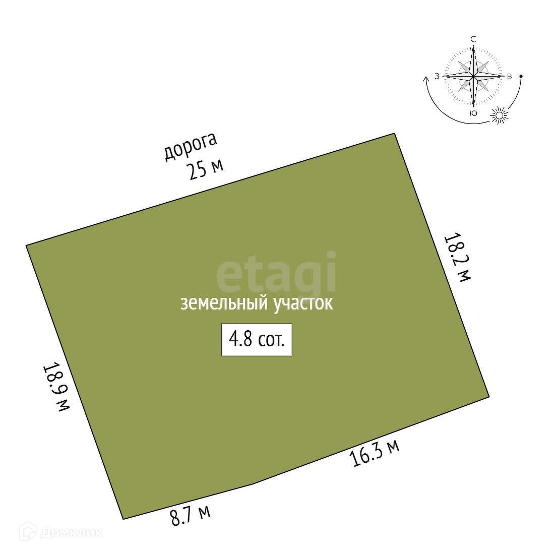 Площадь участка 4.8 сот.