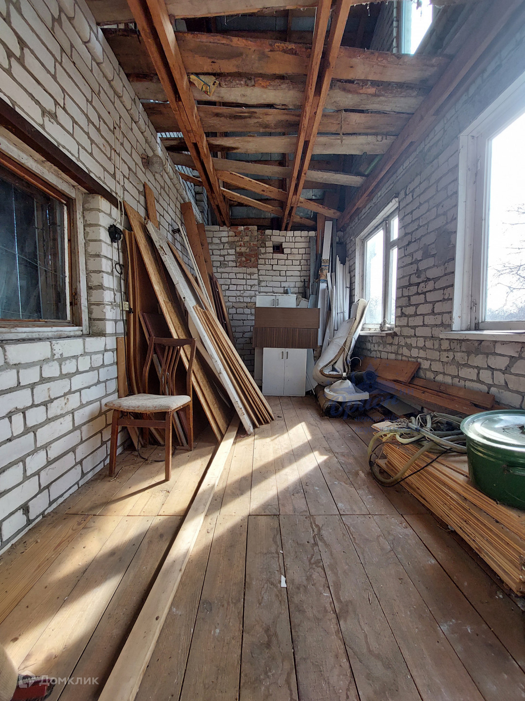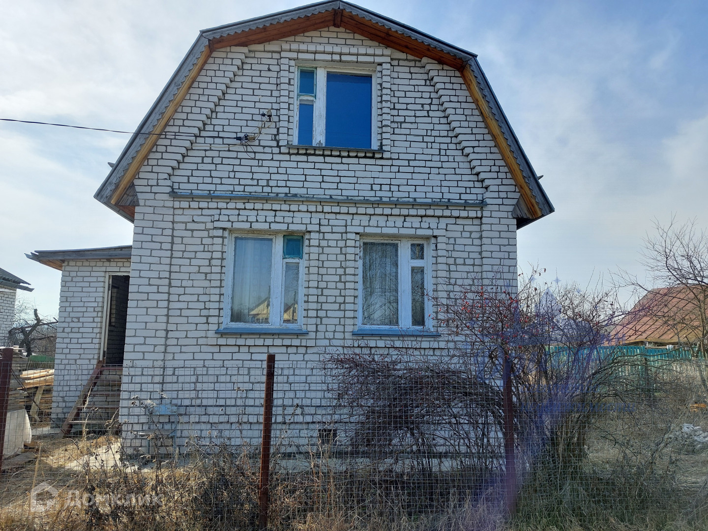Дом двухэтажный, кирпичный. Общая площадь 94 кв. м. Стены выполнены в 1,5 кирпича + утеплитель + гипсокартон. Кровля фальцевая. На 1 этаже располагаются: коридор, две комнаты, пристрой - комната и веранда. На 2 этаже - две жилые комнаты. Так же имеется подпол с погребом.