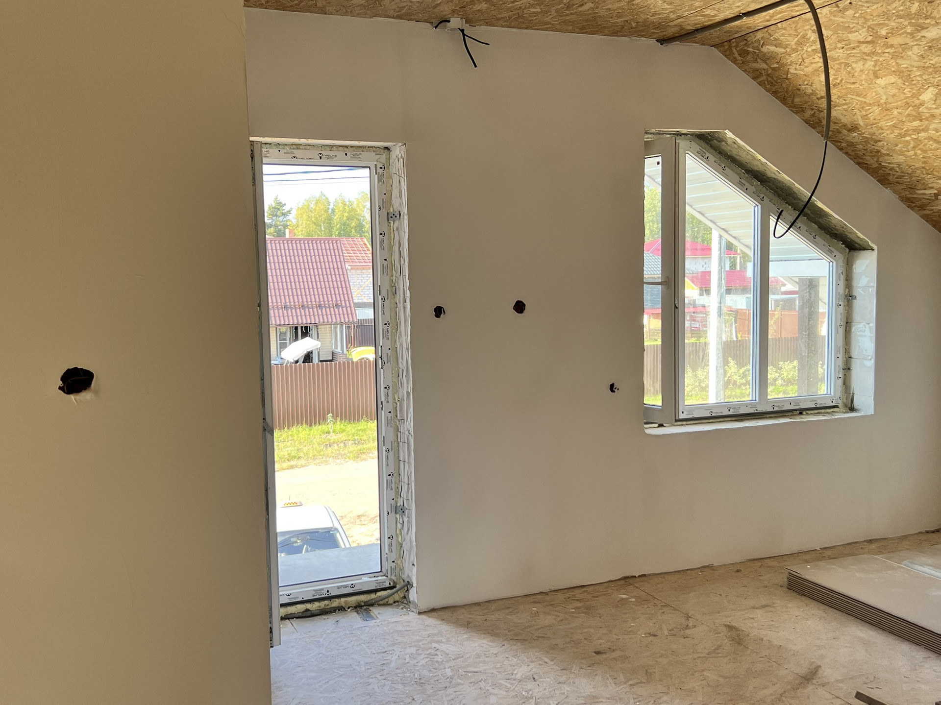 Дом под чистовую отделку, стены оштукатурены. Стяжка и теплые полы (водяные). Электрическая разводка