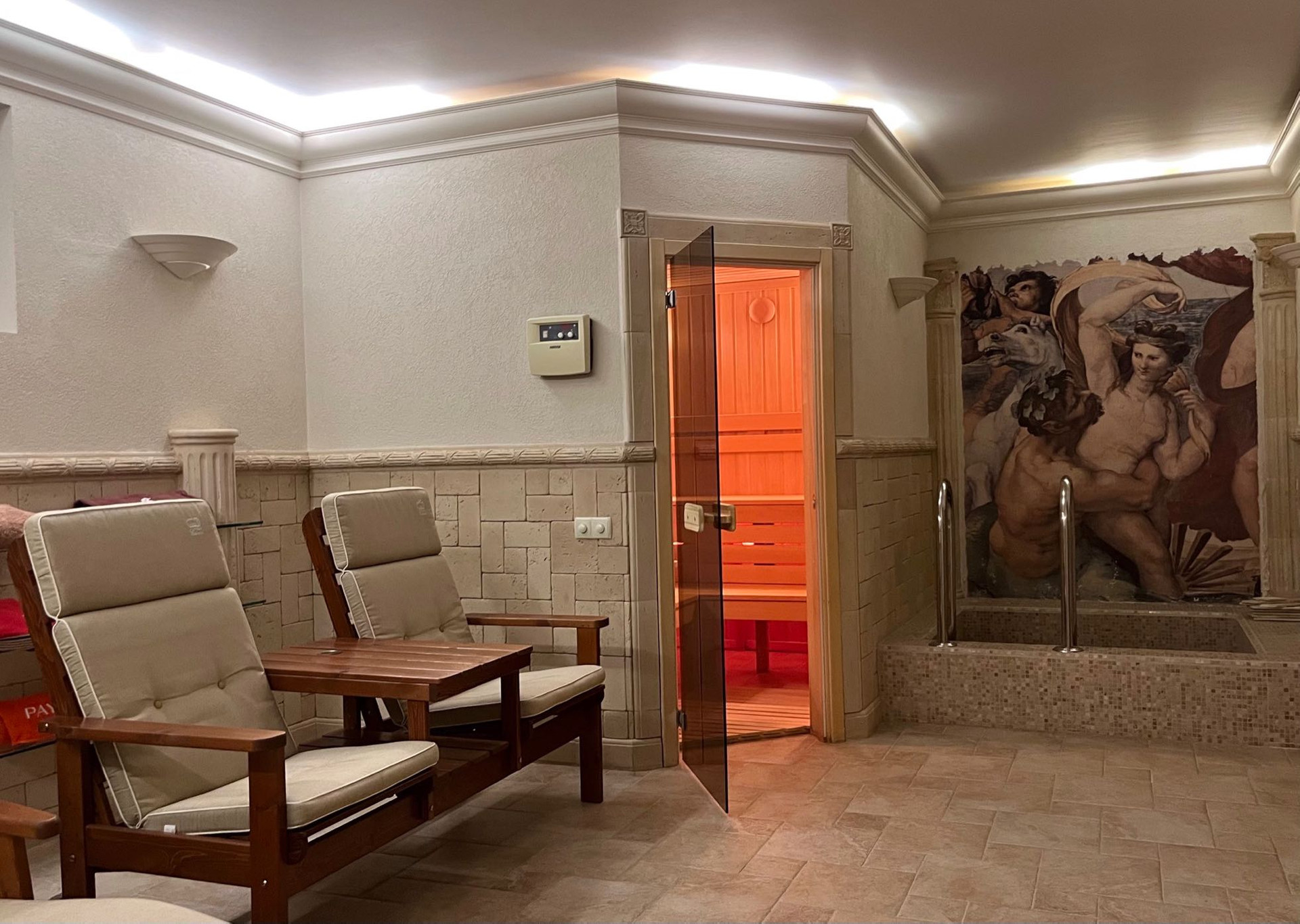 - бассейн 73 м2, соединенный с домом подземным переходом, с выходом в сад