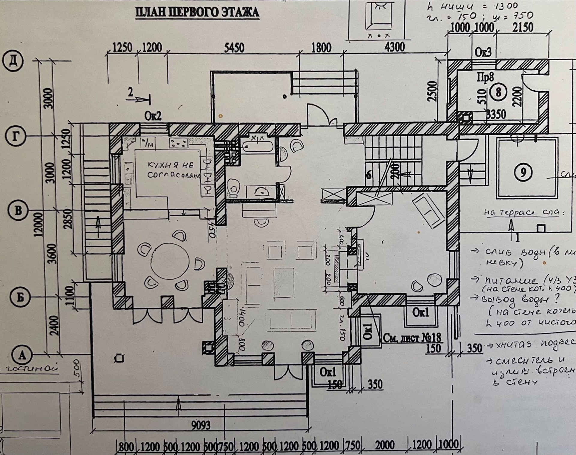 гостиная-кухня-столовая 60м2, дровяной камин с мраморным порталом, гостевая комната/детская 16 м2, холл, с/узел, входная группа с крытым крыльцом 18м2, большая открытая терраса 32 м2, терраса СПА 22м2, котельная 8м2 пристроена к дому независимо, с отдельным входом.