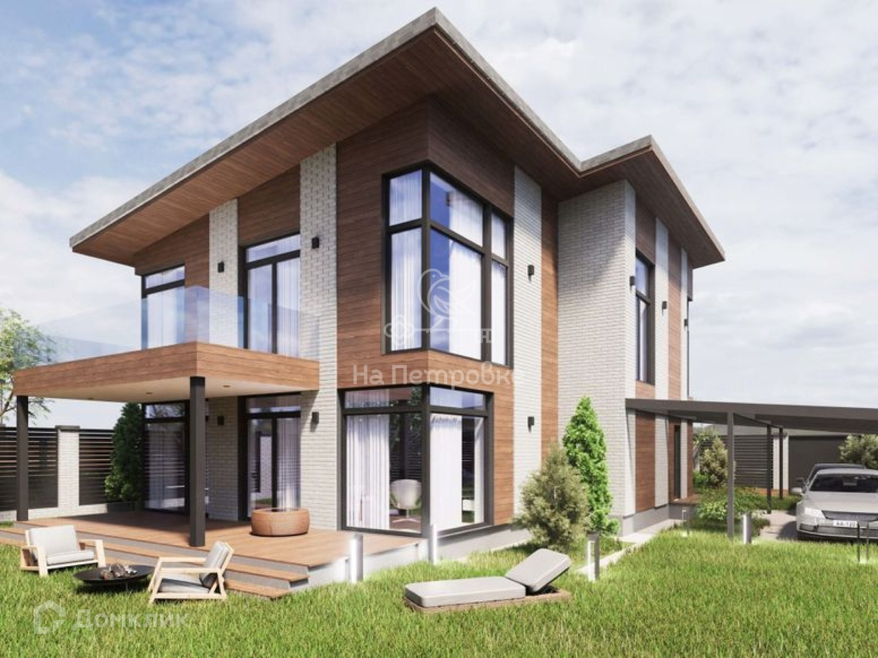 Панорамные окна в пол, 3-4 спальни, 3 санузла, гардеробная комната, терраса, балкон. Имеется возможность организации подвала.