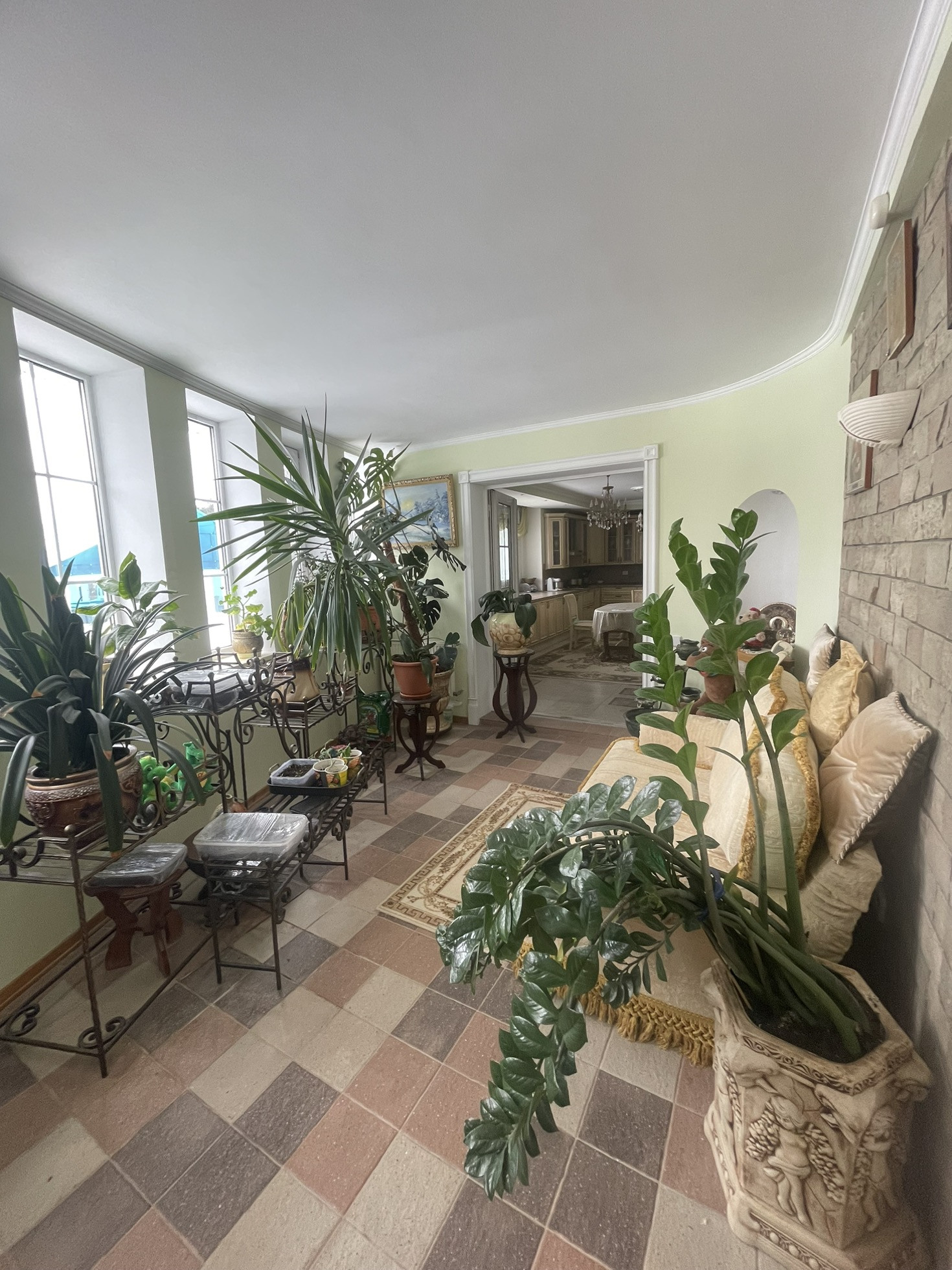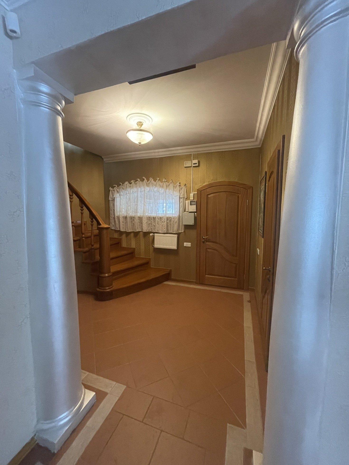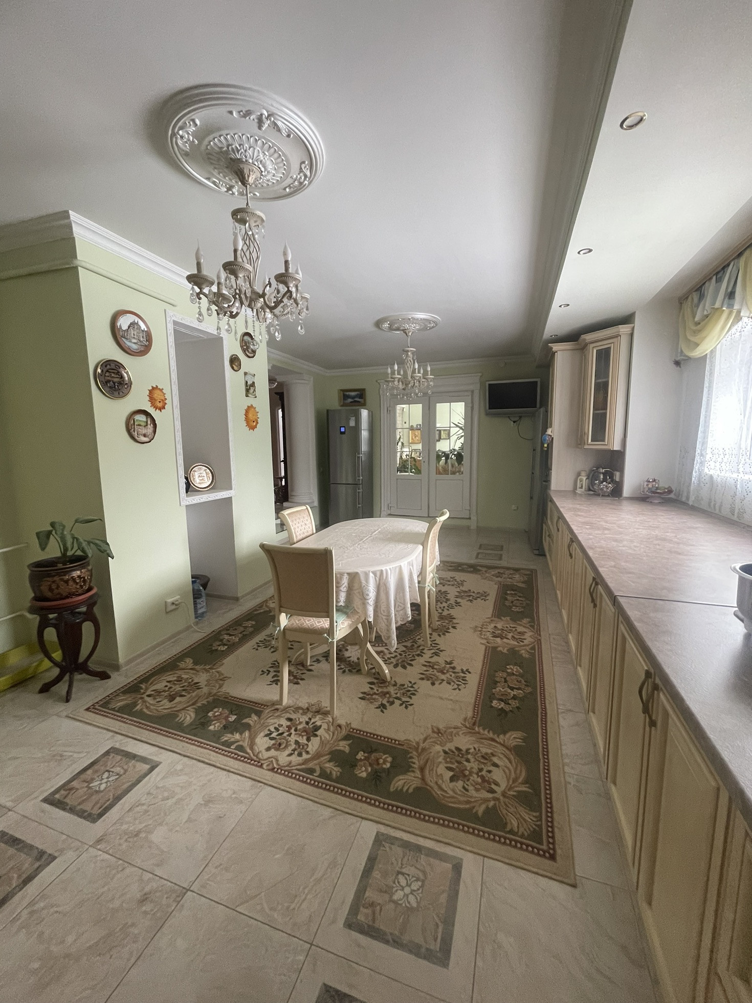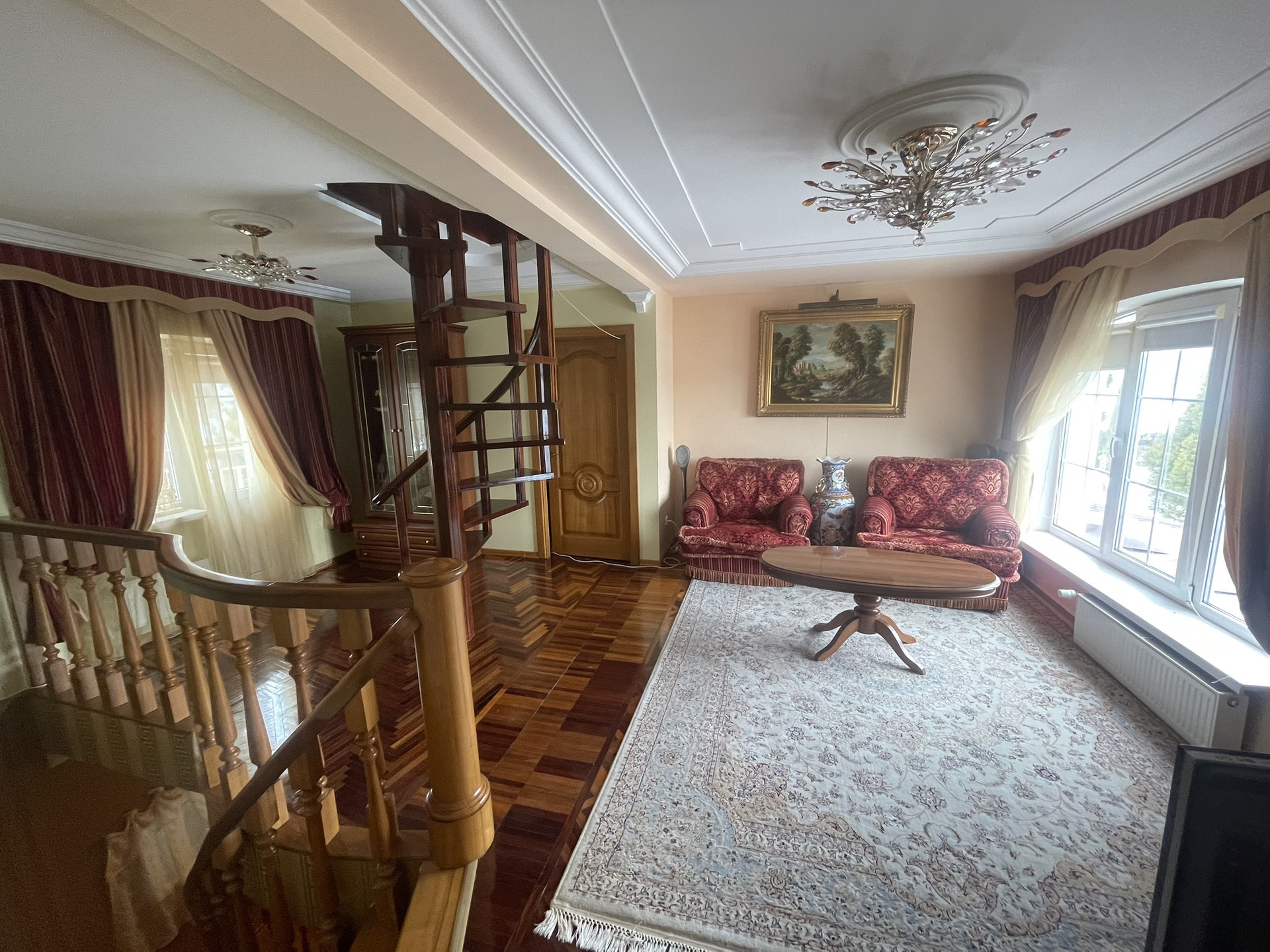 Дом теплый, светлый, уютный, высокие потолки, из дома вид на ухоженный участок с ландшафтным дизайном ( с подстветкой ) и лесополосу. На участке построена мангальная зона с электричеством, отличная сауна, просторный вольер, отдельное помещения для хранения инвентаря, беседка, установлен большой крытый бассейн и парник, 2 гаража. В доме 3 этажа, 6 комнат, качественный ремонт в классическом стиле.