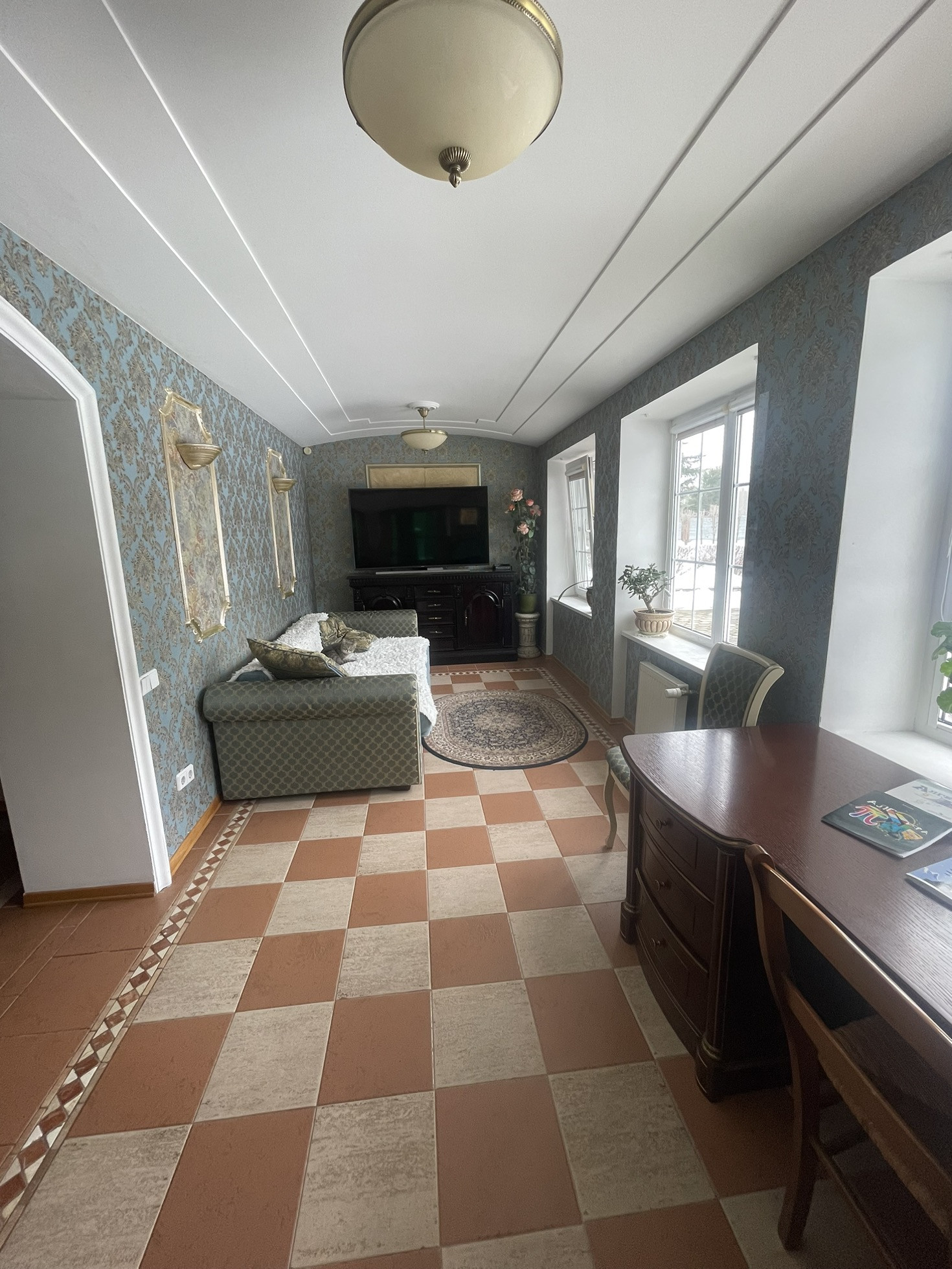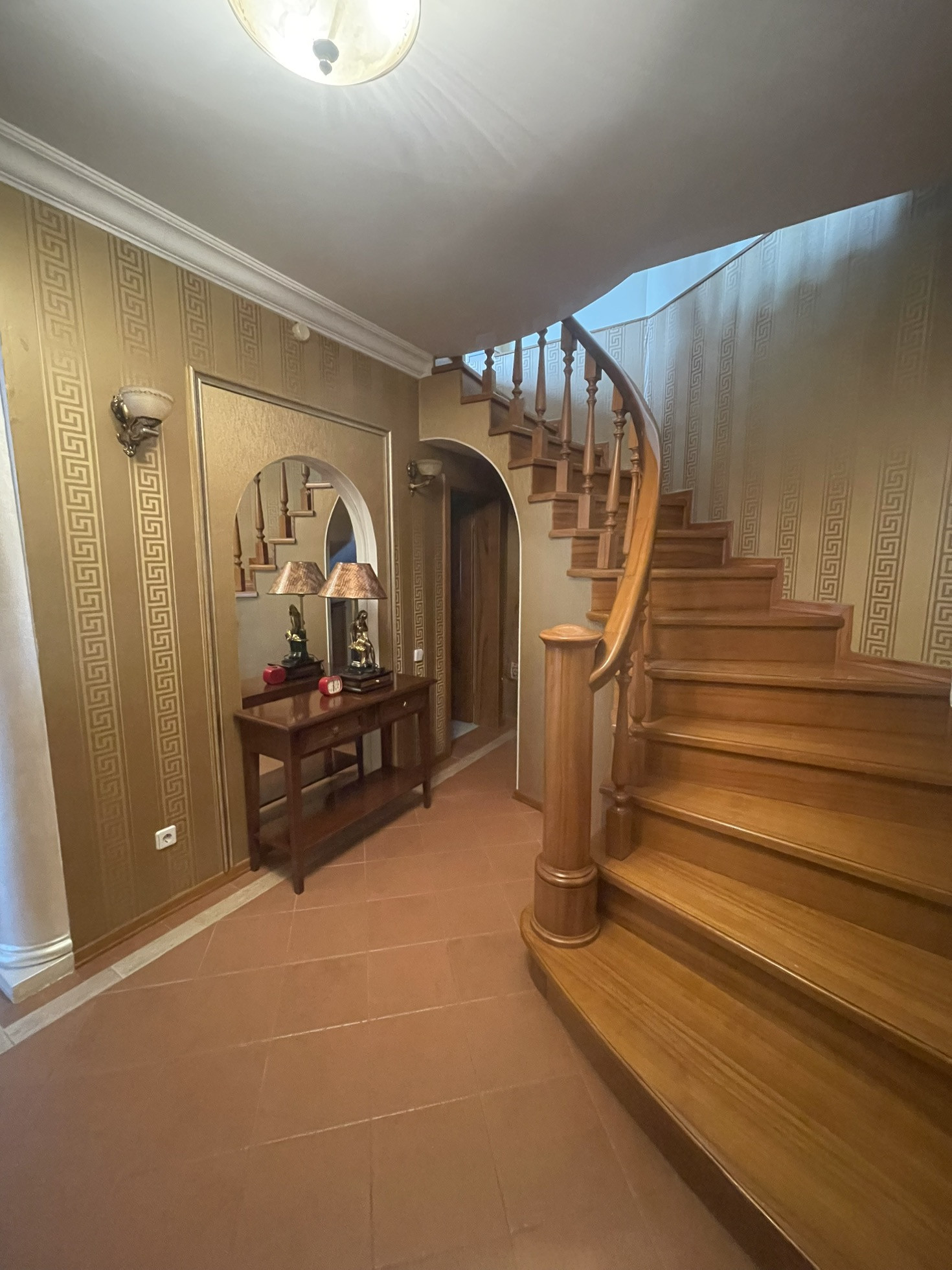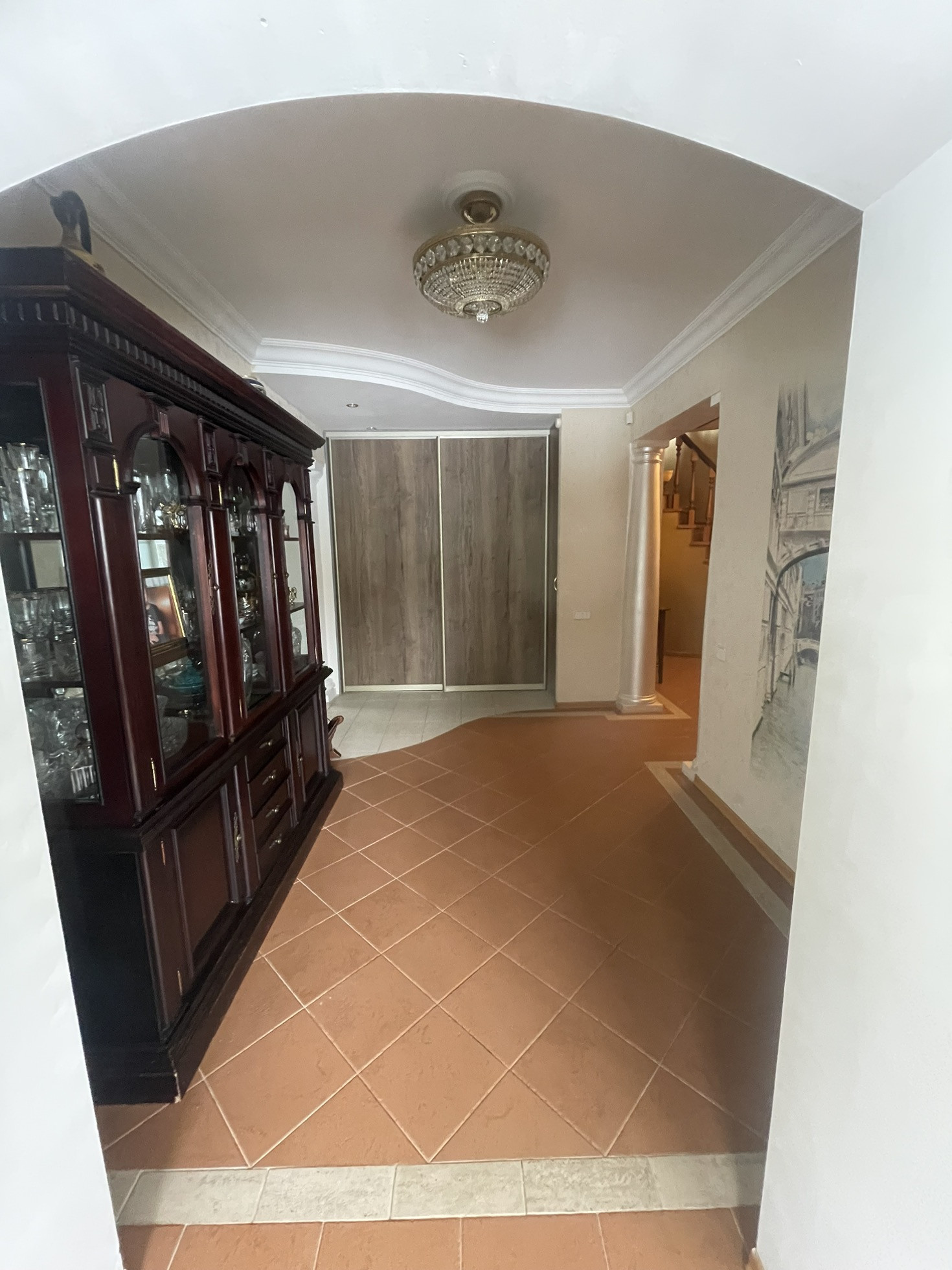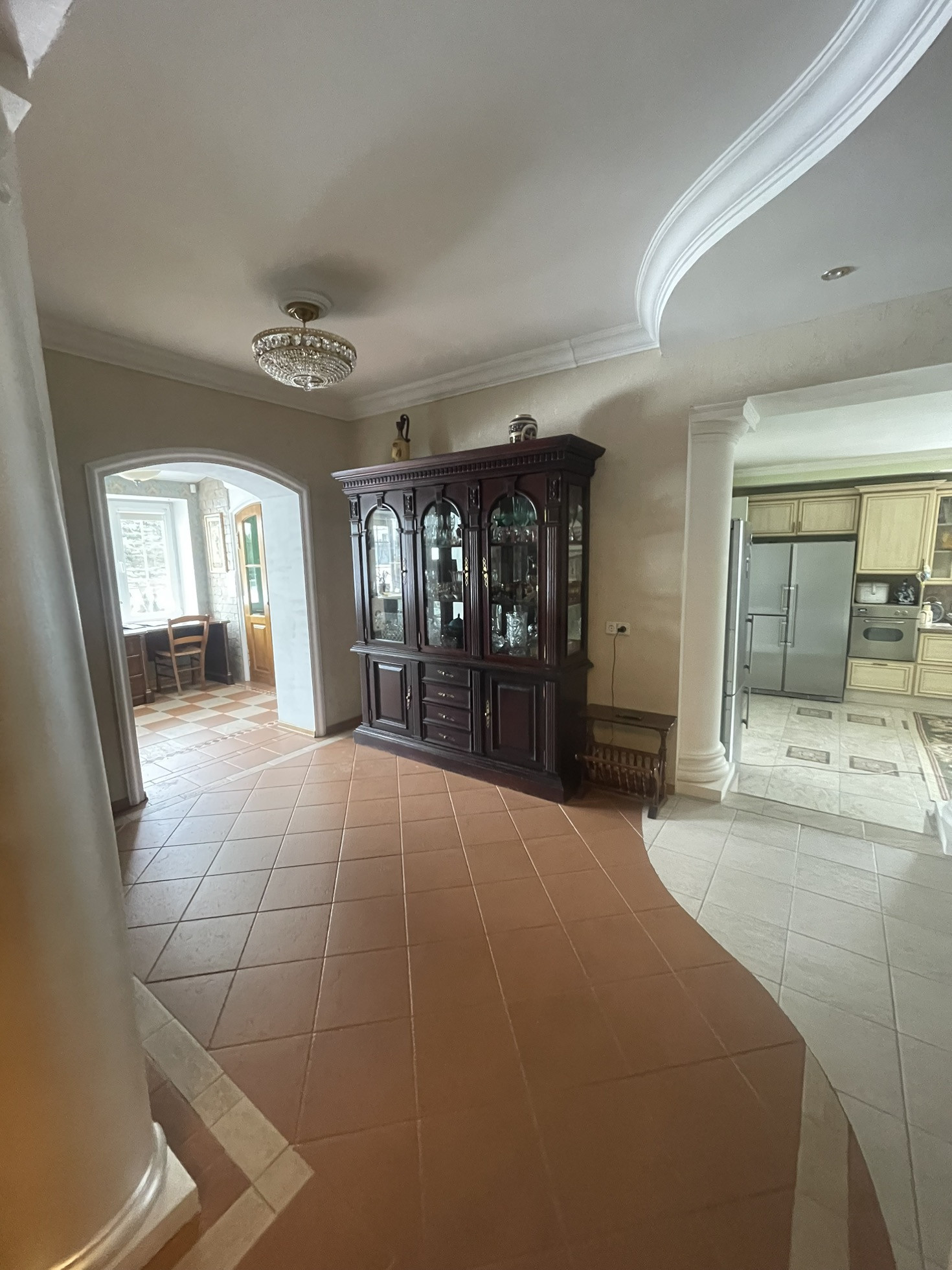 Дом теплый, светлый, уютный, высокие потолки, из дома вид на ухоженный участок с ландшафтным дизайном ( с подстветкой ) и лесополосу. На участке построена мангальная зона с электричеством, отличная сауна, просторный вольер, отдельное помещения для хранения инвентаря, беседка, установлен большой крытый бассейн и парник, 2 гаража. В доме 3 этажа, 6 комнат, качественный ремонт в классическом стиле.