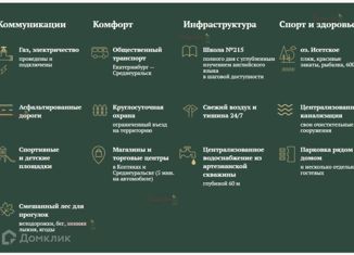 д. Коптяки удачно расположена по зоне ветров, одно из самых экологически благополучных мест Свердловской области, до Среднеуральского водохранилища 10 мин спокойным шагом. В поселке расположена элитная школа 215, так же есть магазины и все необходимое для спокойной жизни за городом. До Екатеринбурга 10 мин на автомобиле, заехать в поселок можн... |