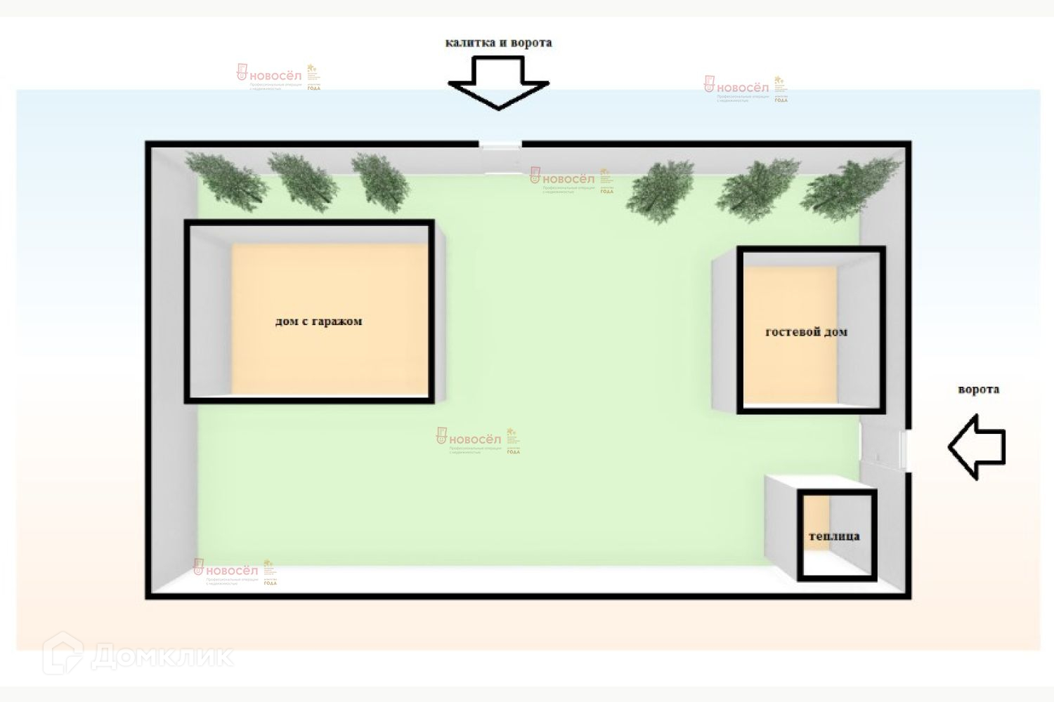На участке растут плодоносящие деревья и кустарники.