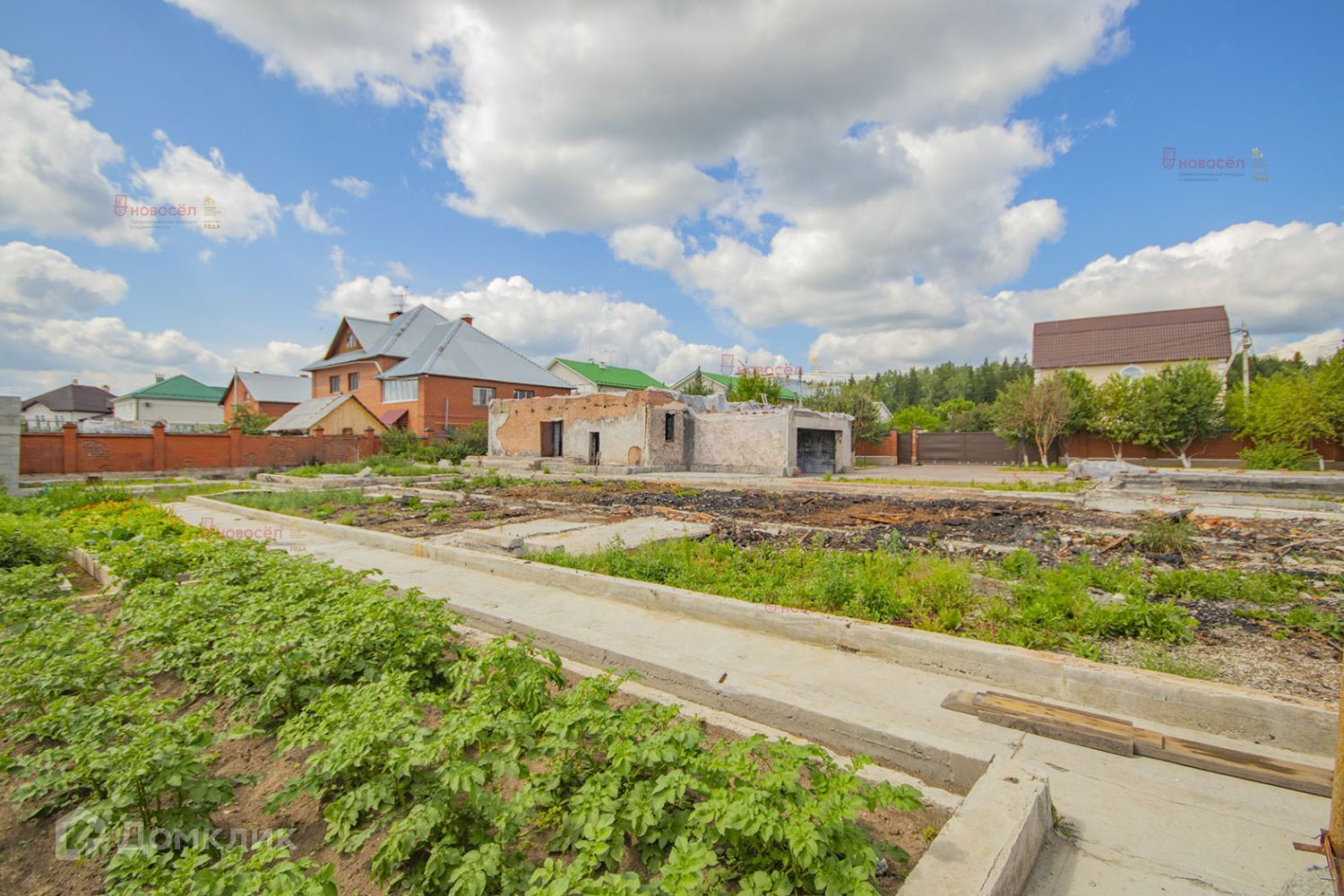 Участок ИЖС. Межевание проведено. По периметру участка установлен добротный кирпичный забор. На участок организовано 2 заезда - основной и технический. Основной заезд благоустроен, выполнена отмостка плиткой.