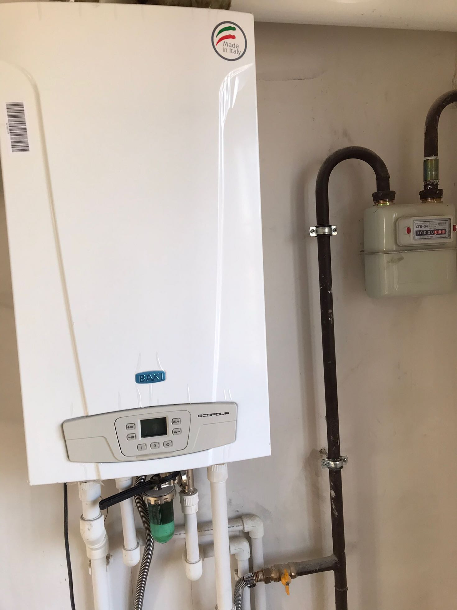 Также застройщиком предусмотрен газовый котёл итальянской фирмы Baxi, тёплый пол на весь первый этаж, радиаторы отопления, монолитная лестница на второй этаж ,разводка горячей-холодной воды первого и второго этажа.