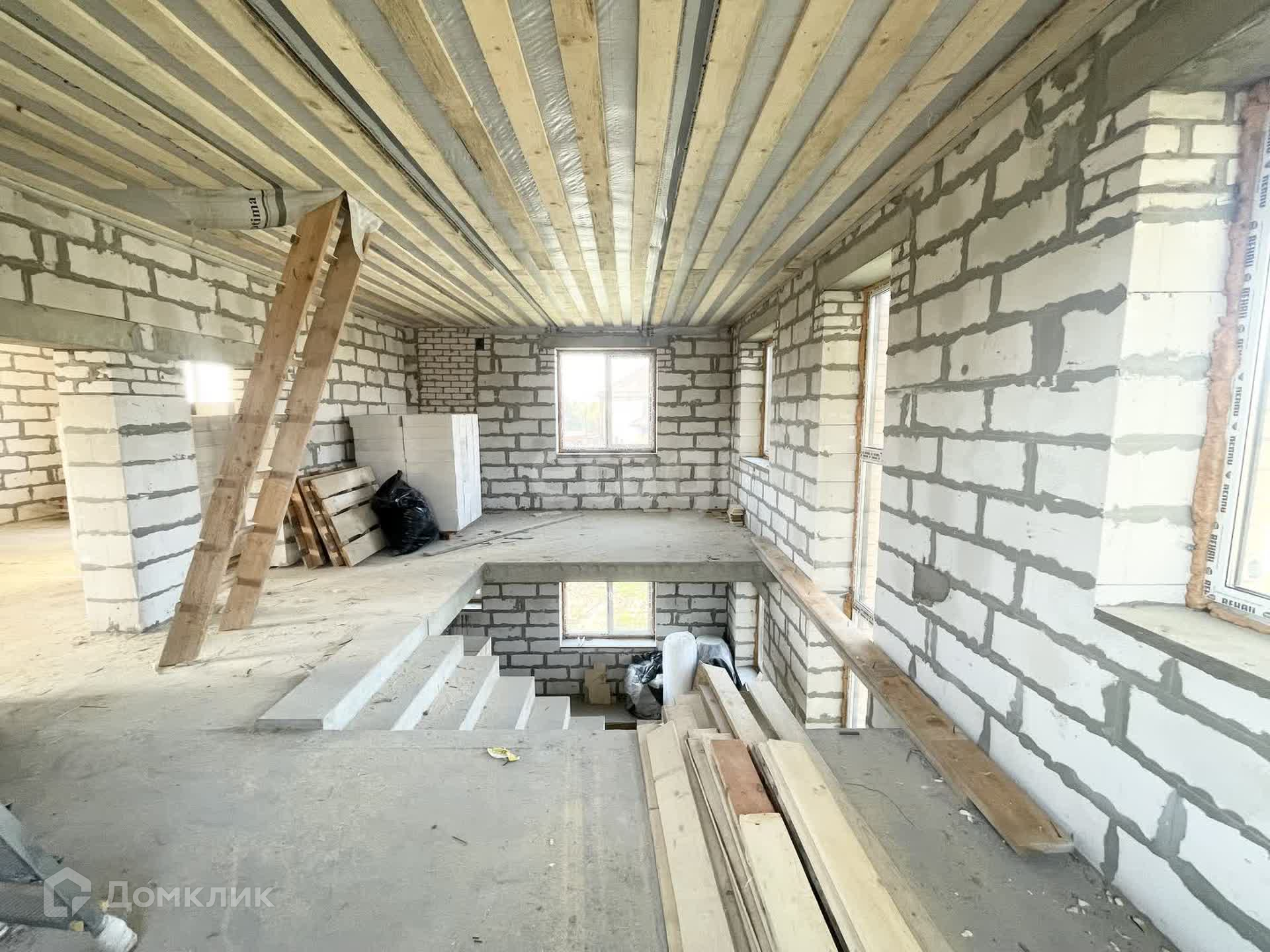 Построен в 2020 году из газоблока (40) и отделан кирпичём с вент.зазором 5см.