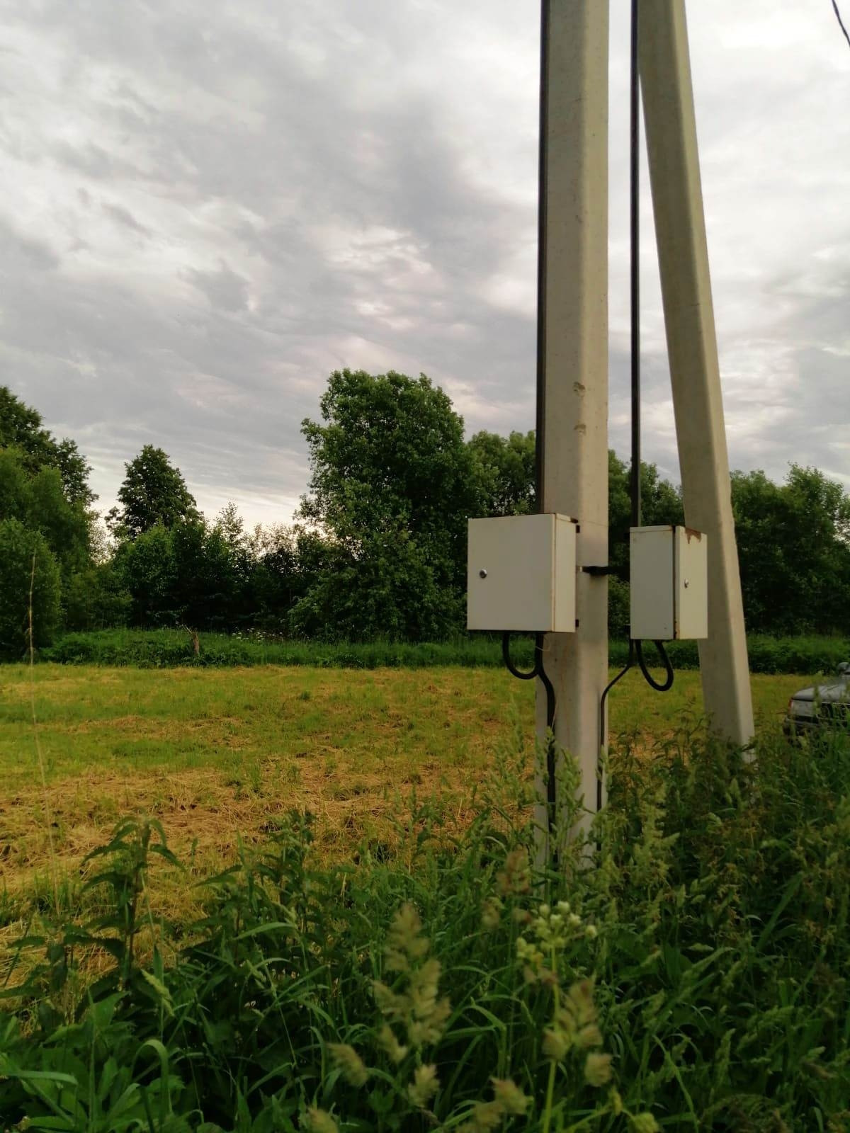 Эл.столб со счётчиком.Газ и вода рядом.