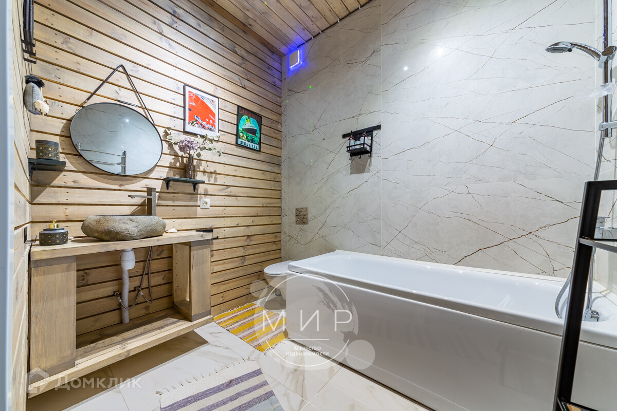 Весь второй этаж отделан лиственницей, санузел выполнен мрамором.