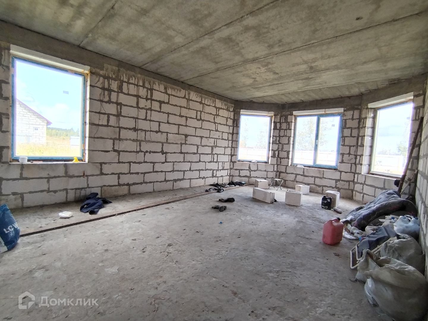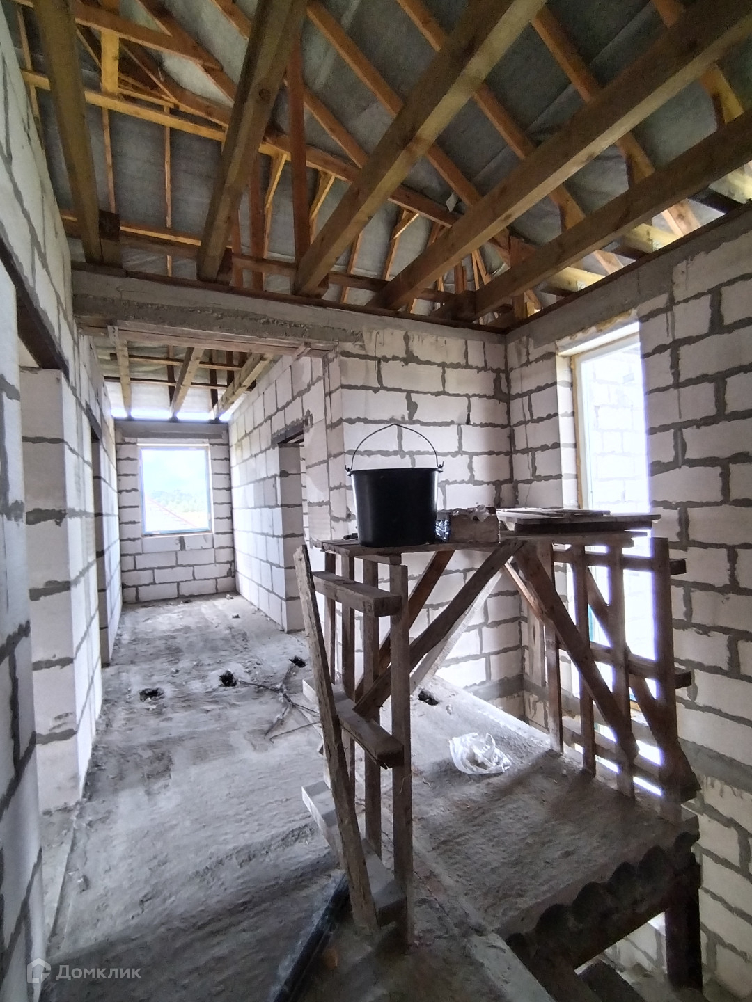 COСTOЯНИЕ: Дом построен из пеноблока в 2 пoлнoценныx этажа с высотой потолков 3 м, плюс возможно увеличение площади дома за счет мансарды. Межэтажные перекрытия дома и лестница на второй этаж железобетонная.