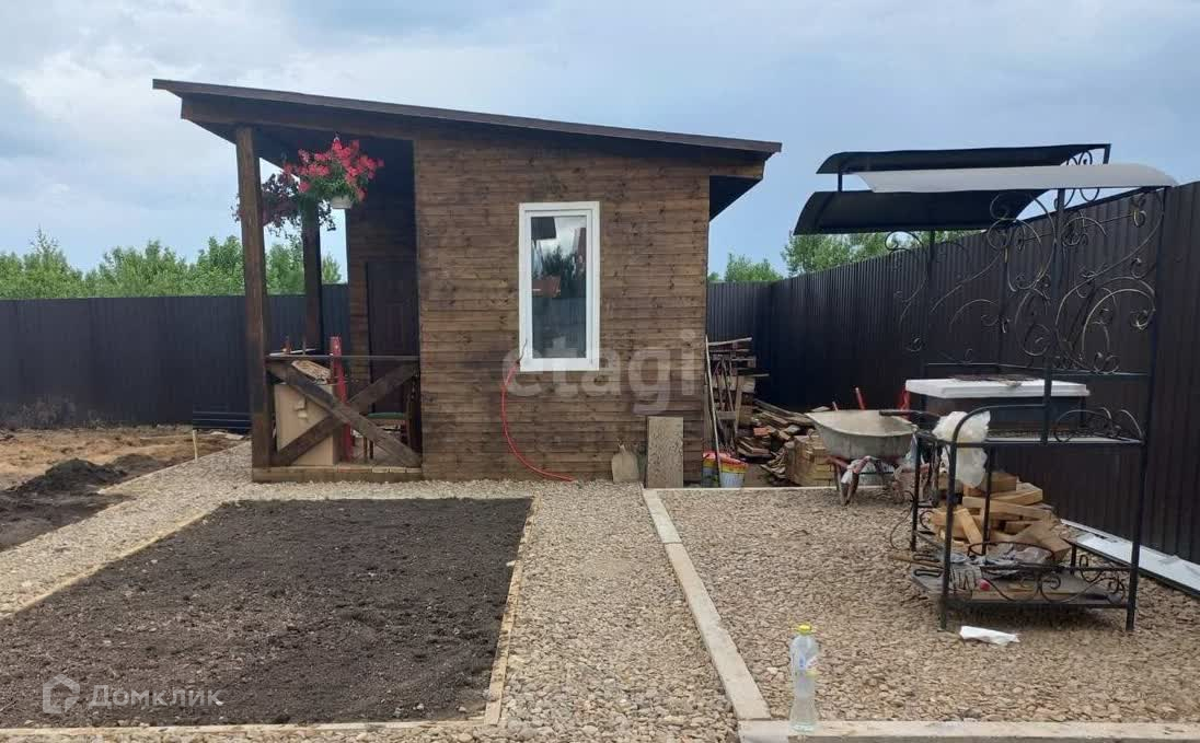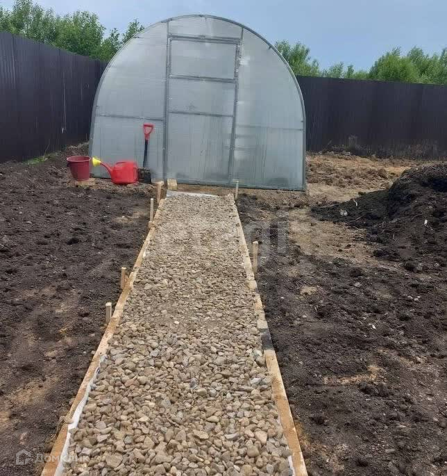 На участке есть небольшой гостевой дом, теплица, тротуарные дорожки, насаждения.