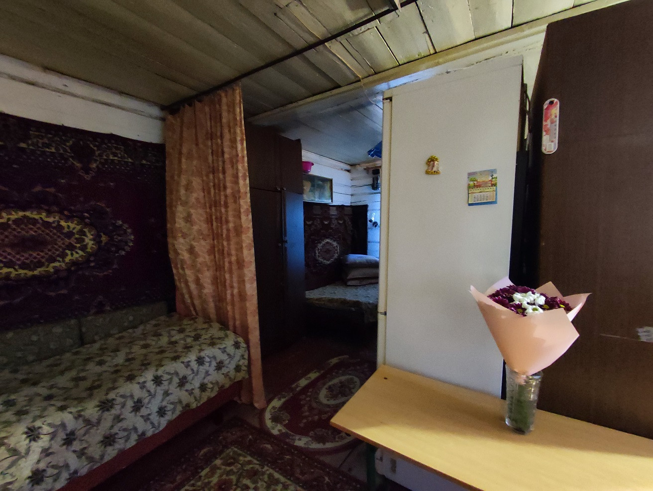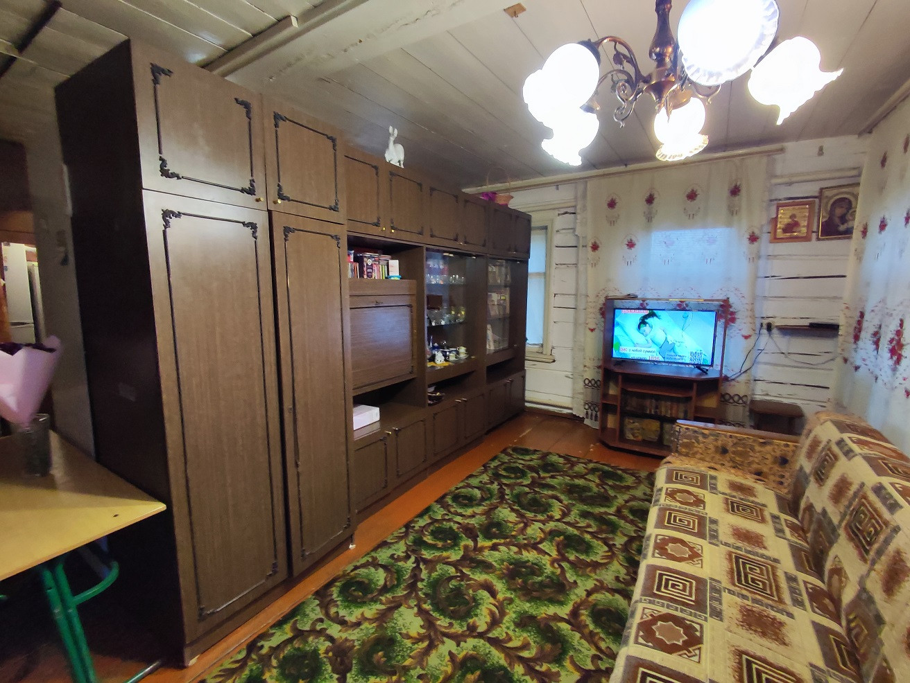 Обжитой бревенчатый дом общей площадью 72 м2. Пригоден после косметического ремонта как для круглогодичного проживания, так и для полноценного сезонного отдыха. Планировка: две больших комнаты и веранда.