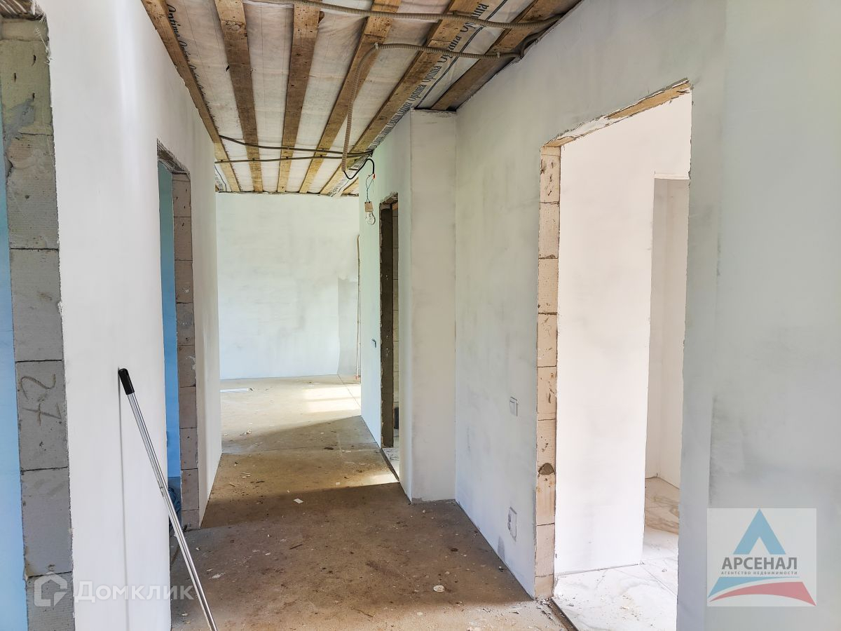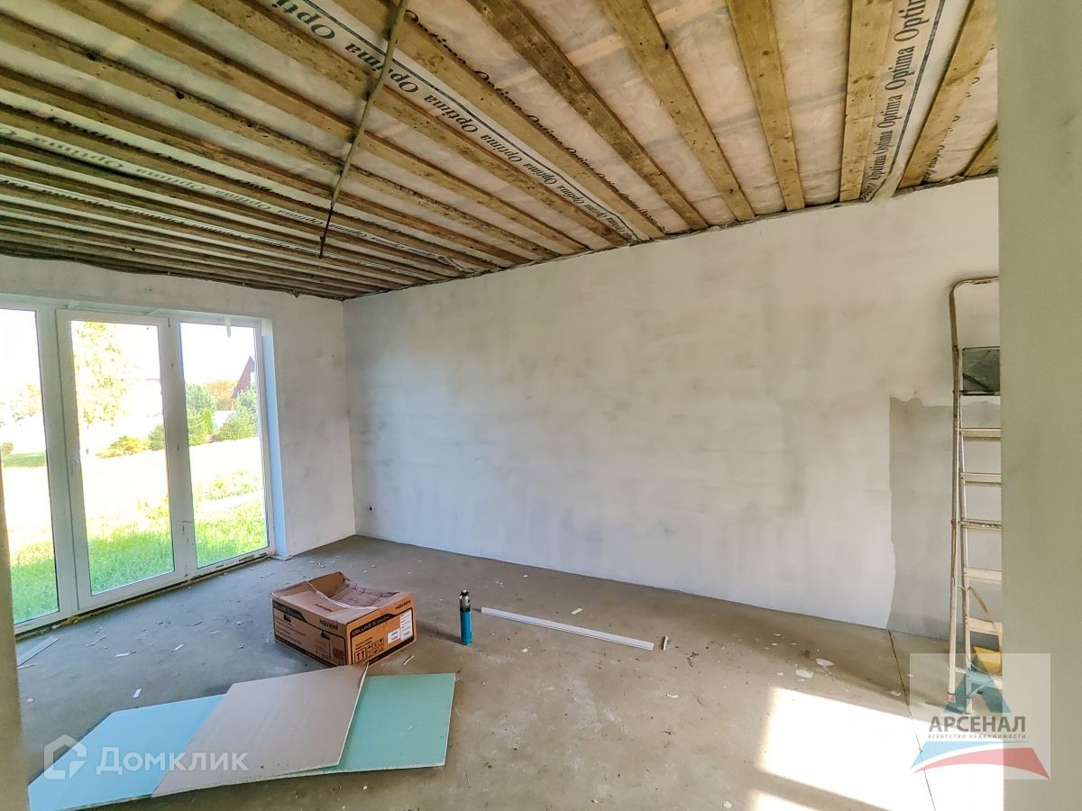 Дом 2023 года постройки на армированном ленточном фундаменте. Стены 400мм выровнены и оштукатурены, перекрытия бетон. Пол утеплён полиуретаном плитами толщиной 80 мм и подготовлена система «теплый пол» по всему дому.. Высота потолков 2.7 метра. Перегородки из газосиликатного блока для улучшения звукоизоляции, качественные окна Rehau (70 профиль с утолщенным стеклопакетом).