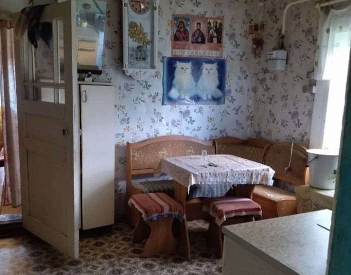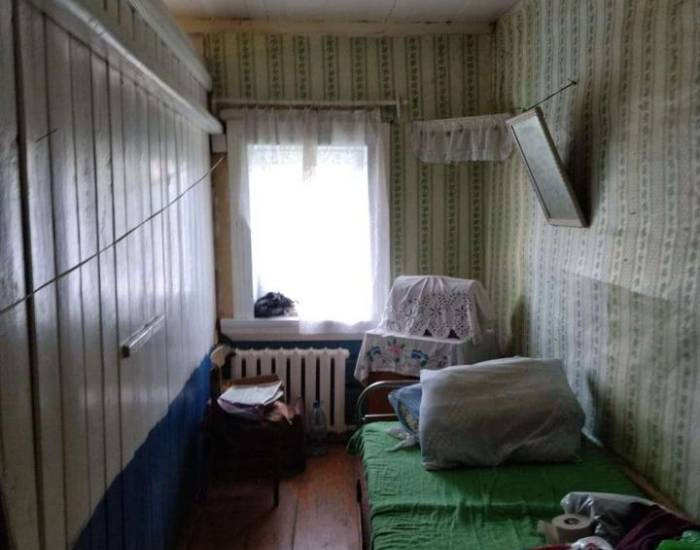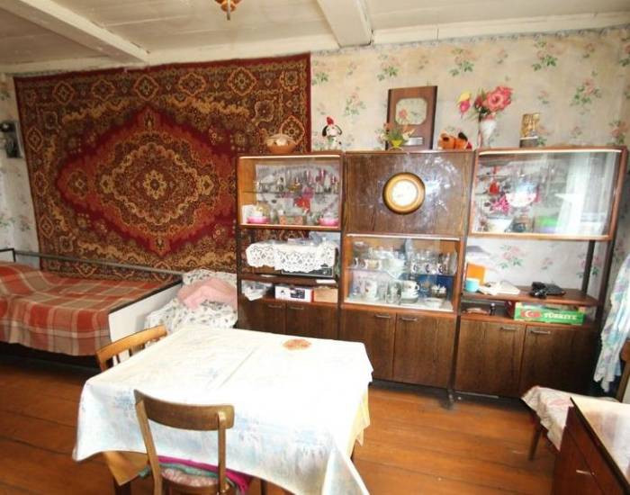 Дом бревенчатый, обшит доской. Полы крепкие. Крыша покрыта шифером. В доме есть настоящая русская печь, две комнаты. Коммуникации: Центральные электричество 220 вт., газ со счетчиком , отопление газ котел плюс печное, вода колодец, летний туалет. Из дома выход на крытый хоз. двор .