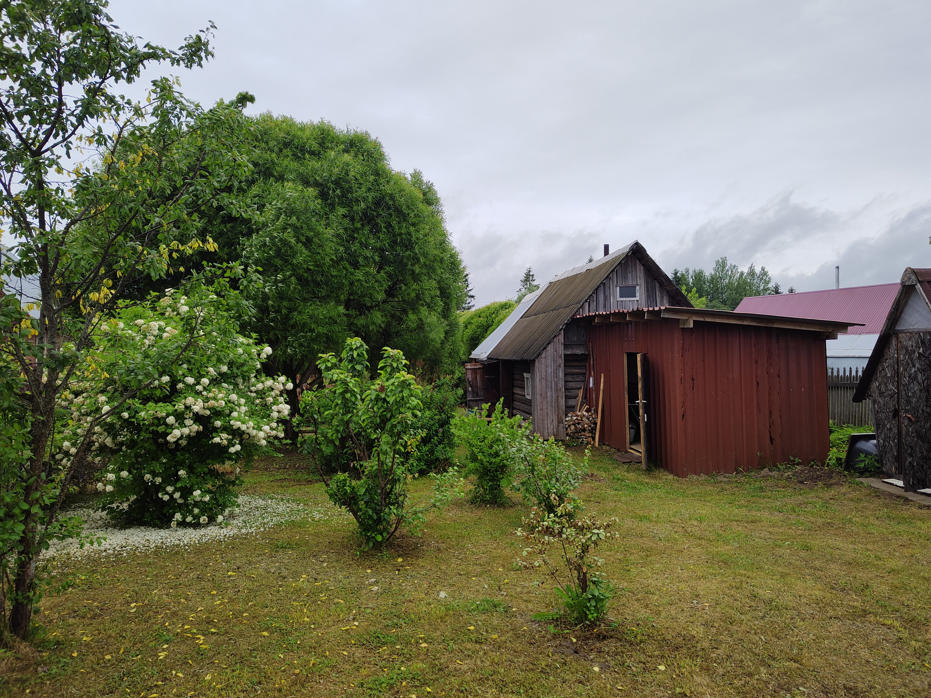 На участке расположена баня, металлический гараж, туалет, две теплицы по 6 метров. Участок ухоженный. Имеется большое количество плодовых и декоративных деревьев, кустарников, многолетних цветов.