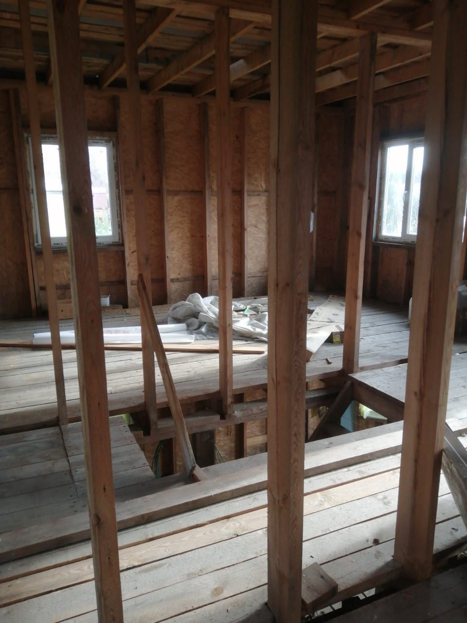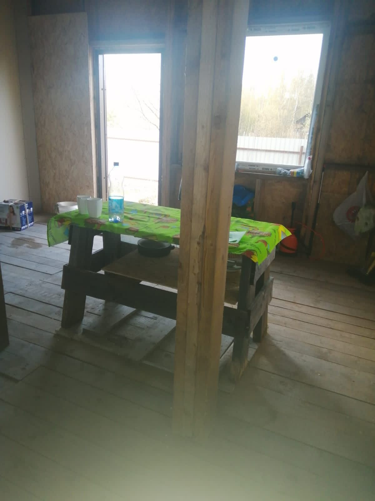 Каркасный дом, обшит сайдингом, окна ПВХ. Фундамент сваи 2м углублены, залиты лентой 50. Подведено электричество.