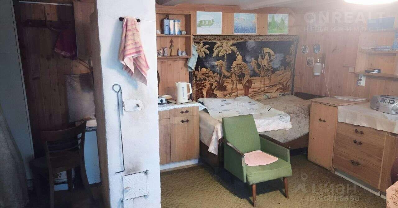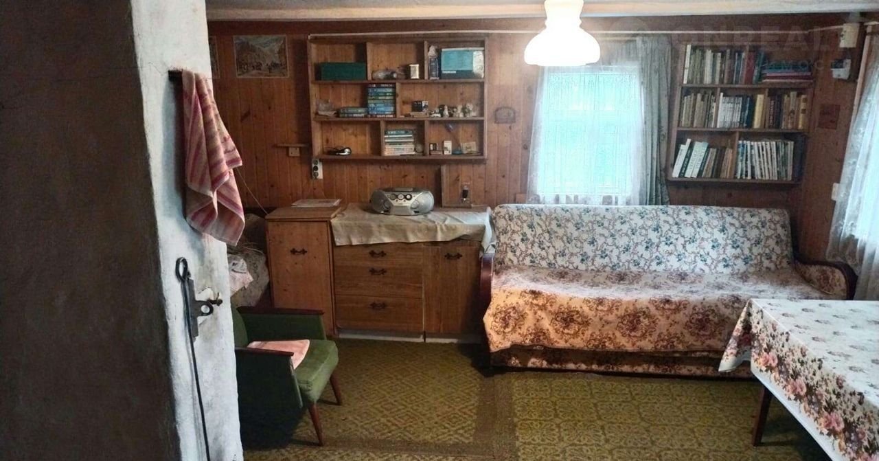 Дом бревенчатый, внешне обшит и утеплён, в доме есть печка и можно жить зимой, установлен новый электосчетчик, крыша из шифера, есть чердак для хранения вещей, погреб, присутствует кухня для готовки, к дому дополнительно пристроены терраса. Жилая площадь 22м.