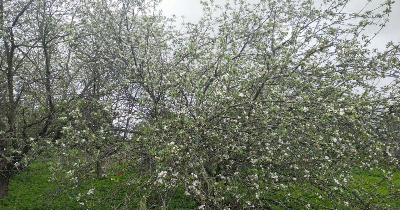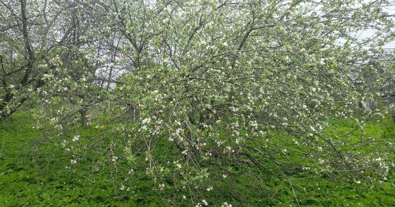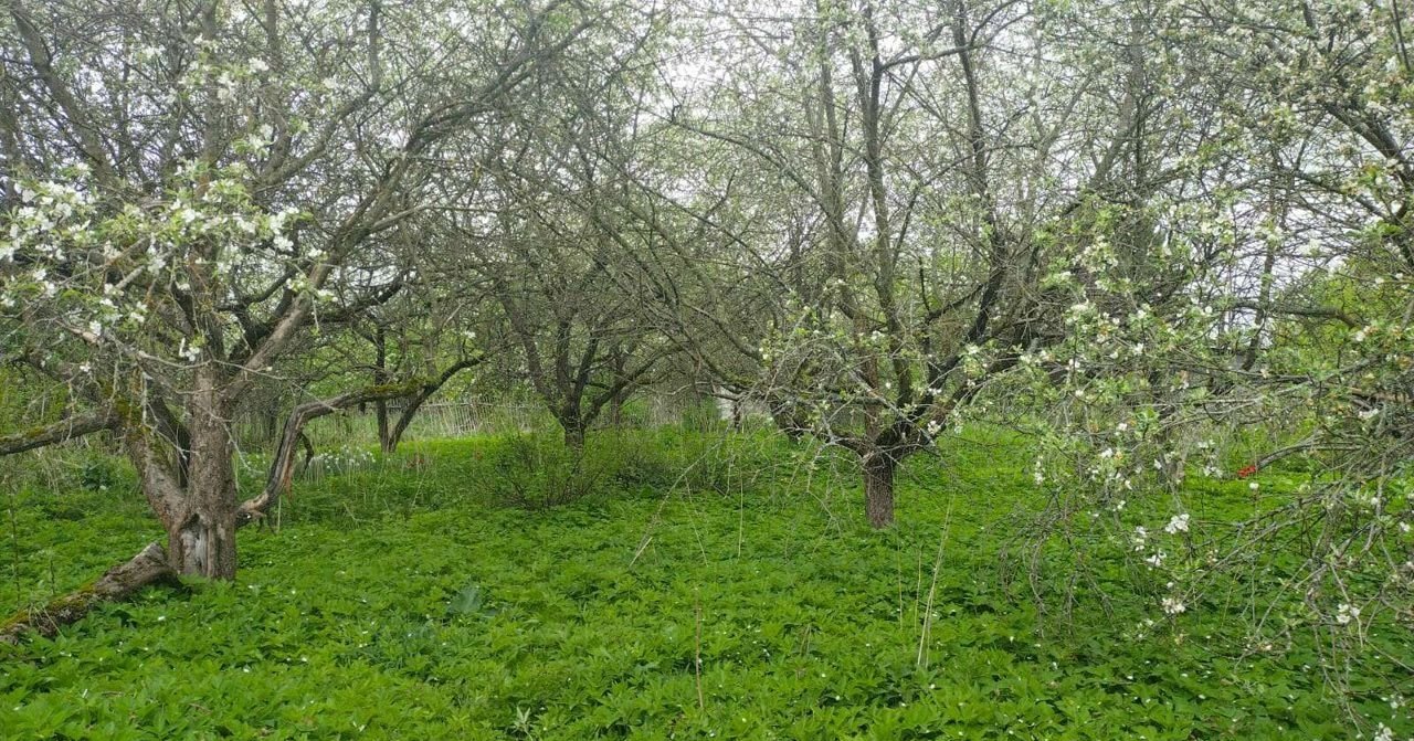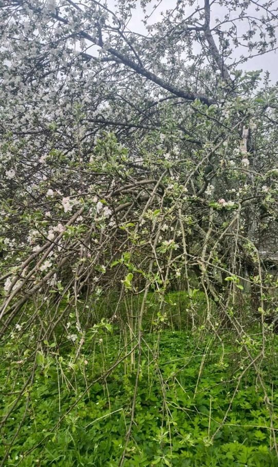 Земельный участок, на котором расположен дом имеет прямоугольную форму размером 15,8 соток, очень хорошая плодородная почва для выращивания. В связи с отсутствием ухода  - участок не обработан и зарос зеленью (см. фото), на территории участка есть множество плодоносящих яблонь разных сортов и различные кустарники.