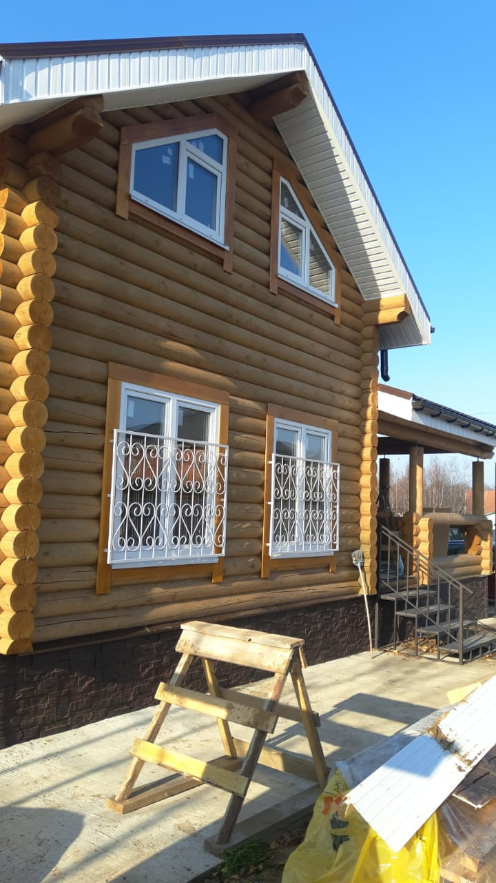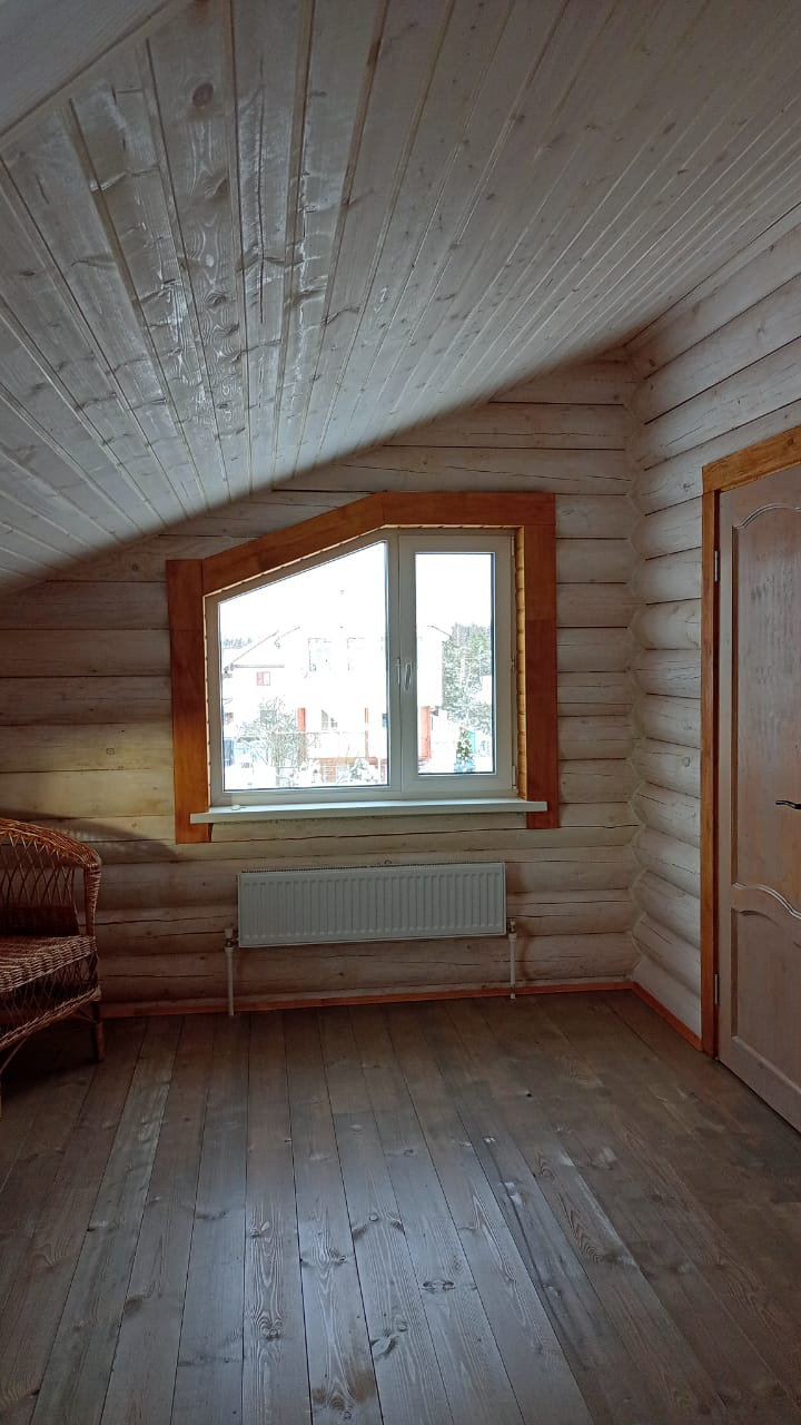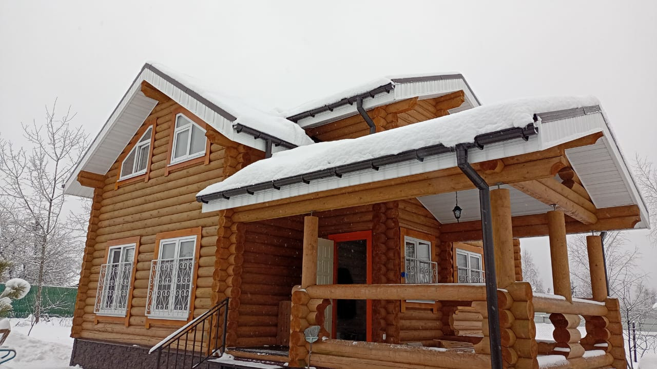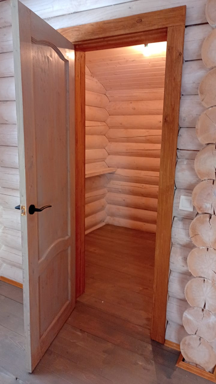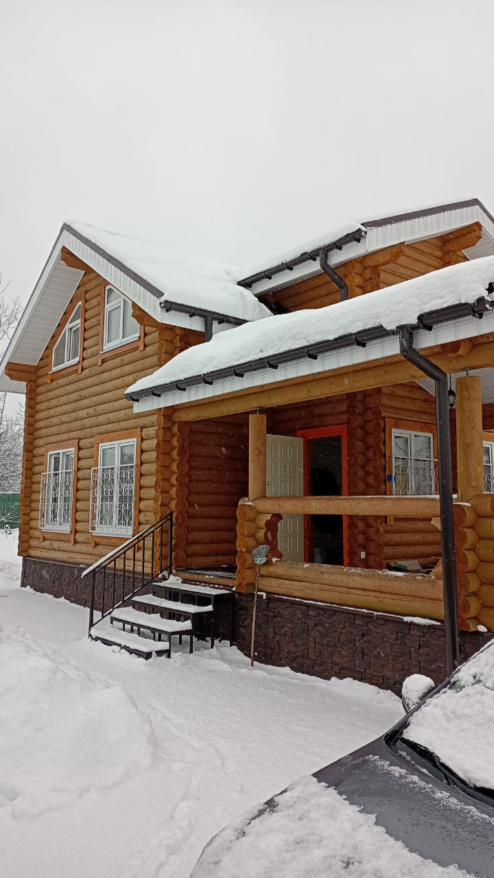 ЭКО дом из карельской сосны, из оцилиндрованного бревна, пропитан финской защитой снаружи и внутри. Полностью утеплён, под металлочерепицей, с большой террасой и местом для хранения инвентаря.