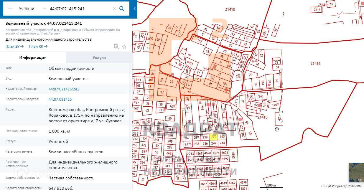 Кадастровый номер участка 44:07:021415:241