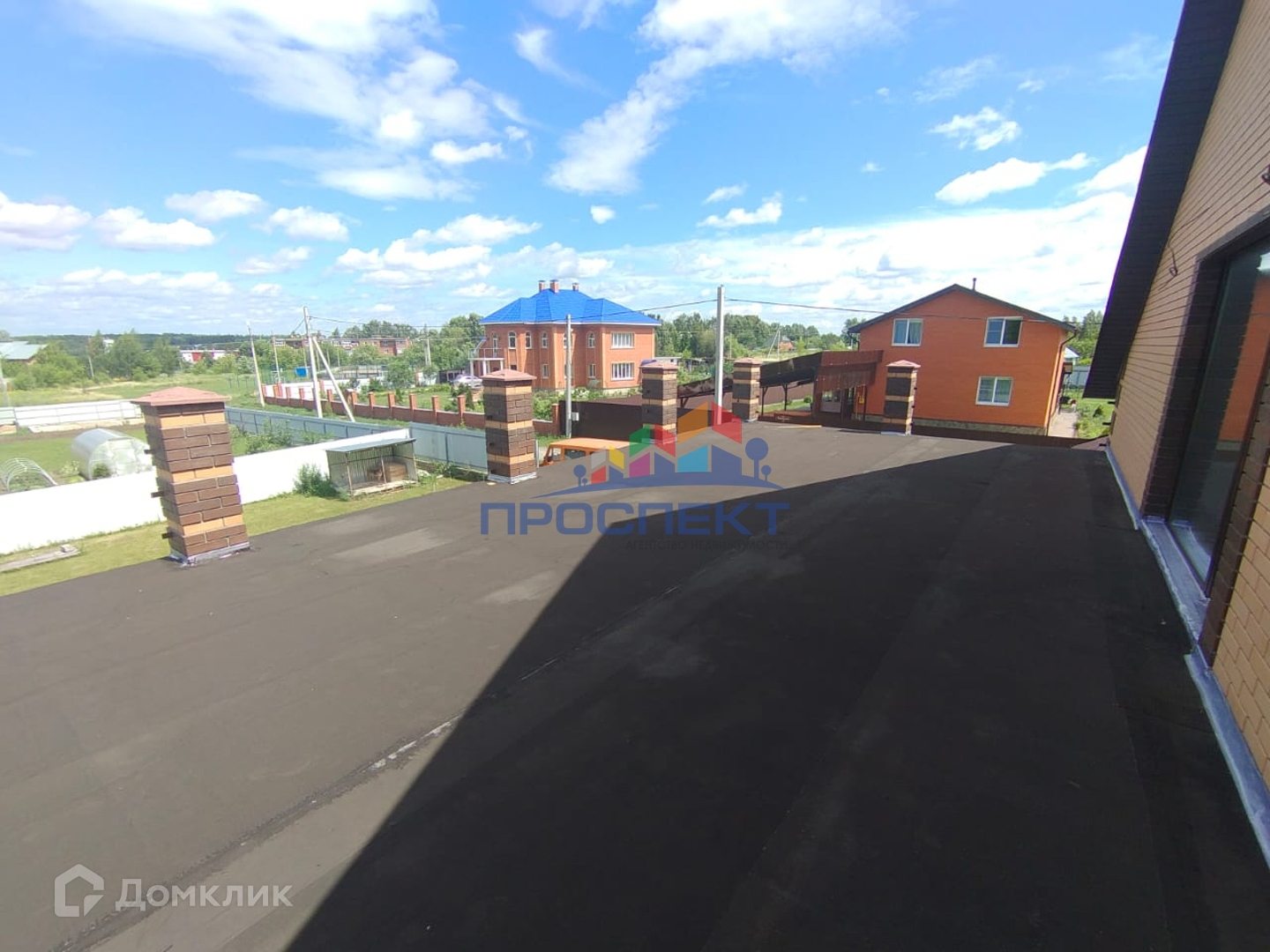 На втором этаже: три комнаты, санузел и выход на веранду (6х12). Лестница на второй этаж металлическая. Забор из профнастила.