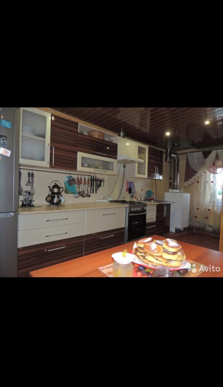 При продаже в доме остаётся встроенная кухня, газовая плита, вытежка, газовый котёл, мебель в прихожей, 2 кровати, стенка в гостиной и шторы.