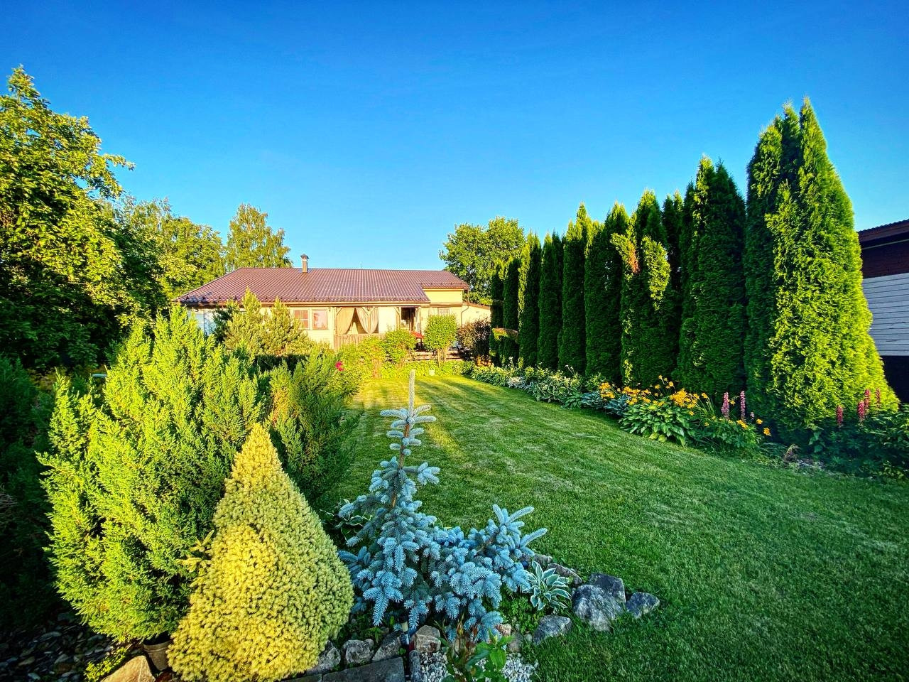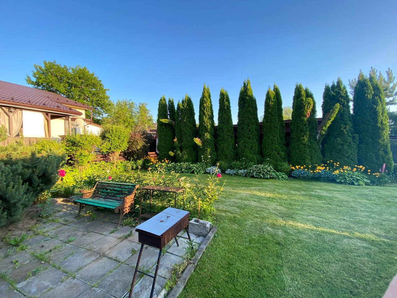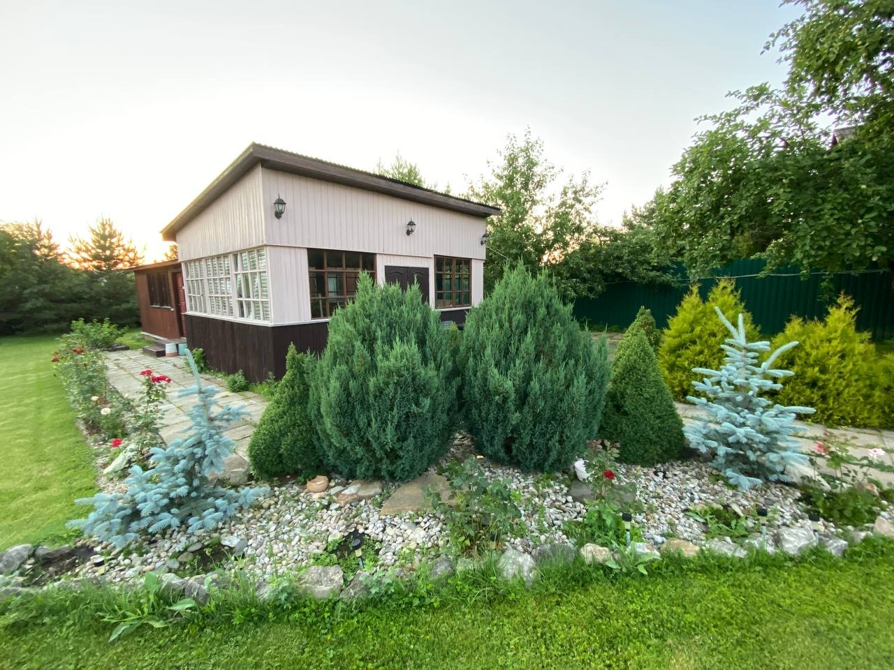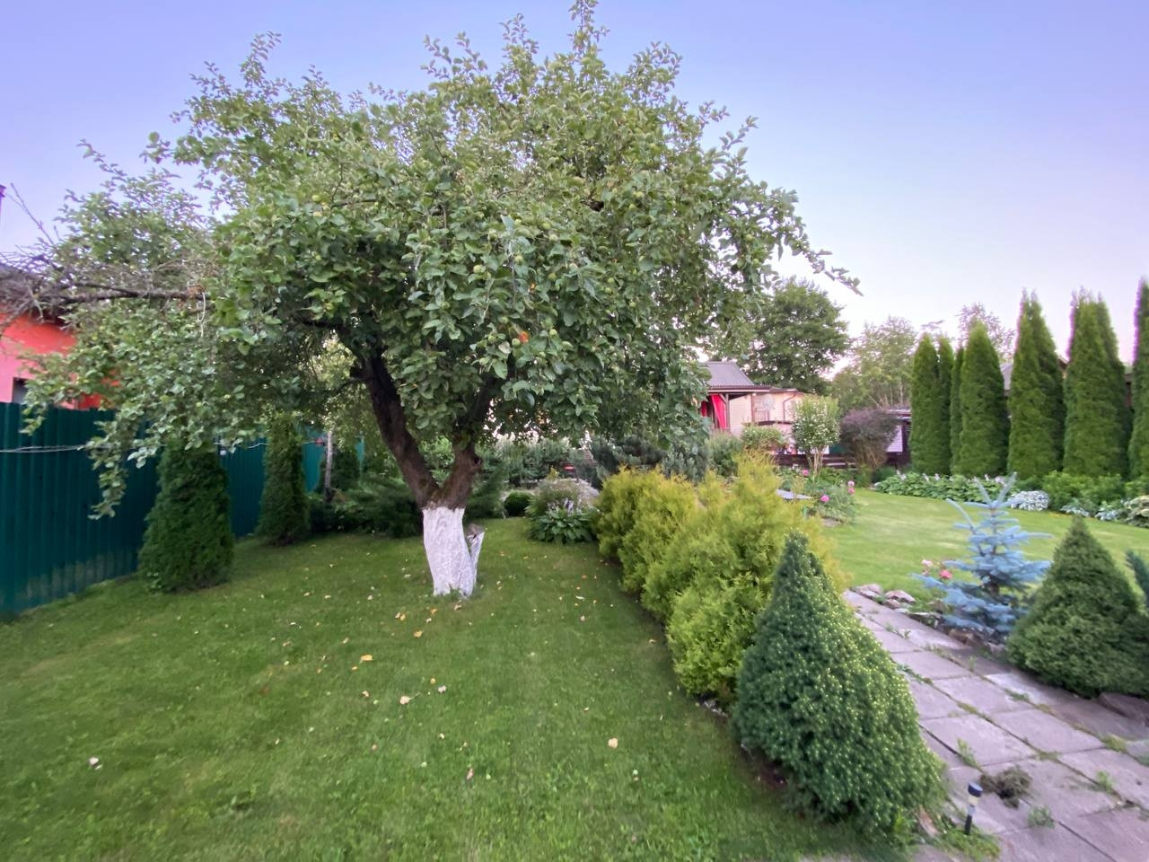 На участке имеется баня,беседка,хоз.блок.Участок полостью огорожен забором из металлопрофиля,ворота автоматические.