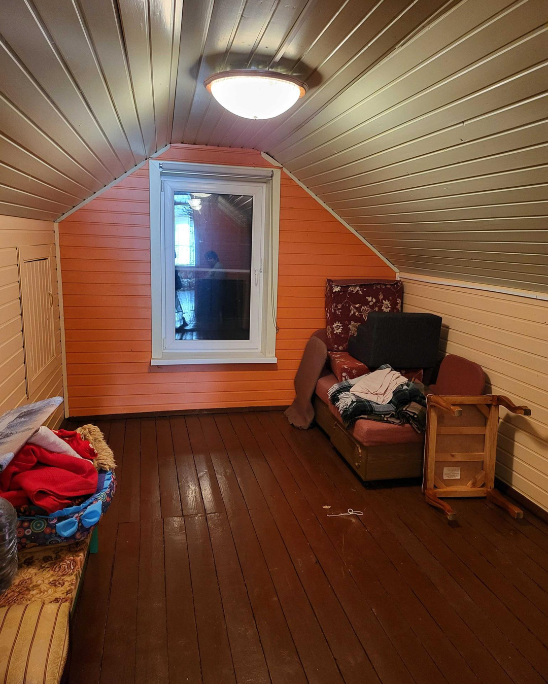 2 этаж мансардный 2 спальни жилые и помещение порядка 100 метров свободного назначения под отделку.Актуальные документы по дому и земле, включая хоз.постройки и баню.