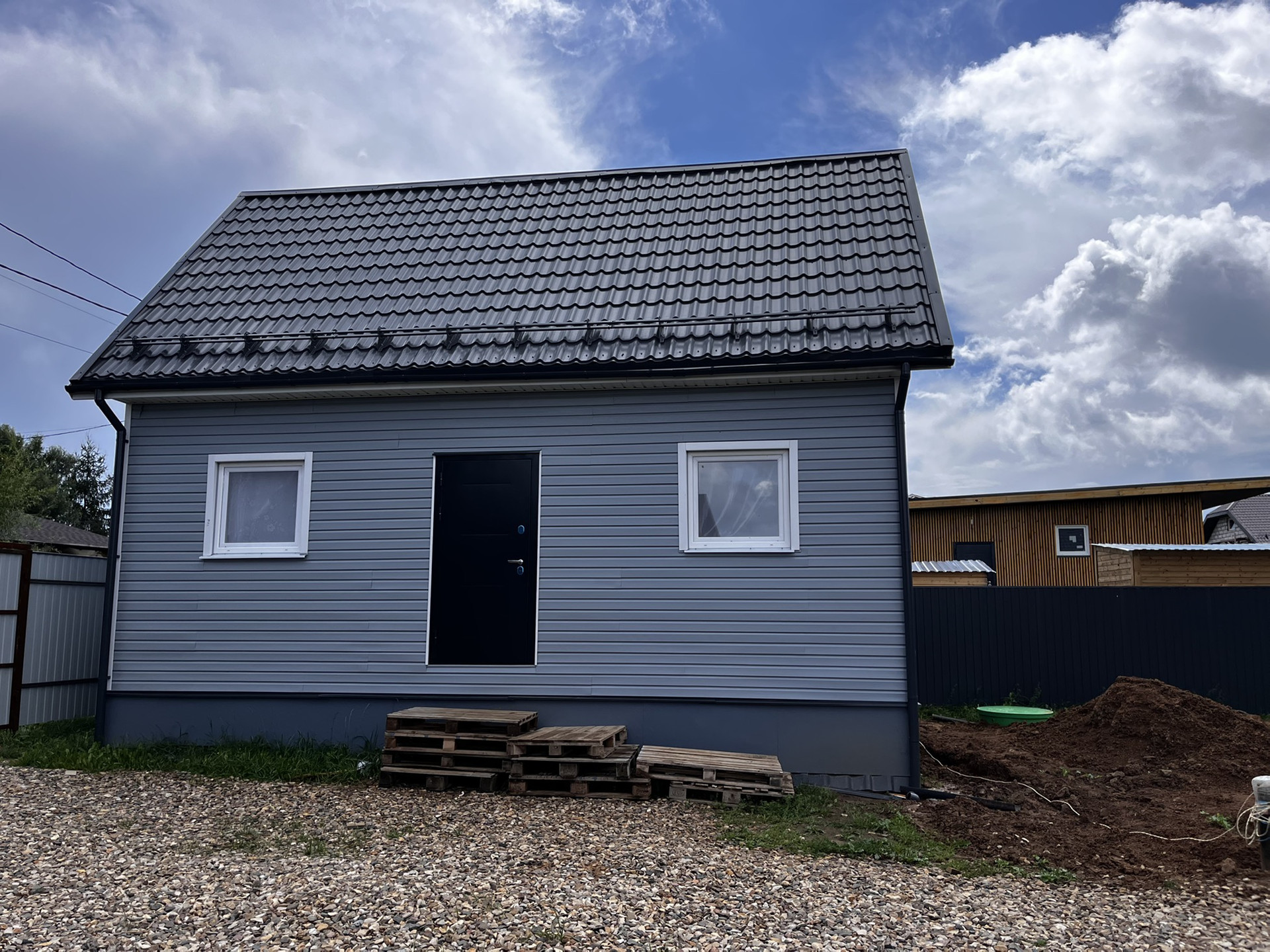 Окна рехау 2 камерные, дверь с терморазрывом, Металочерепица монтеррей, утепление полы стены 150 мм, кровля 200мм, сайдинг. Отопление кварцевые обогреватели.