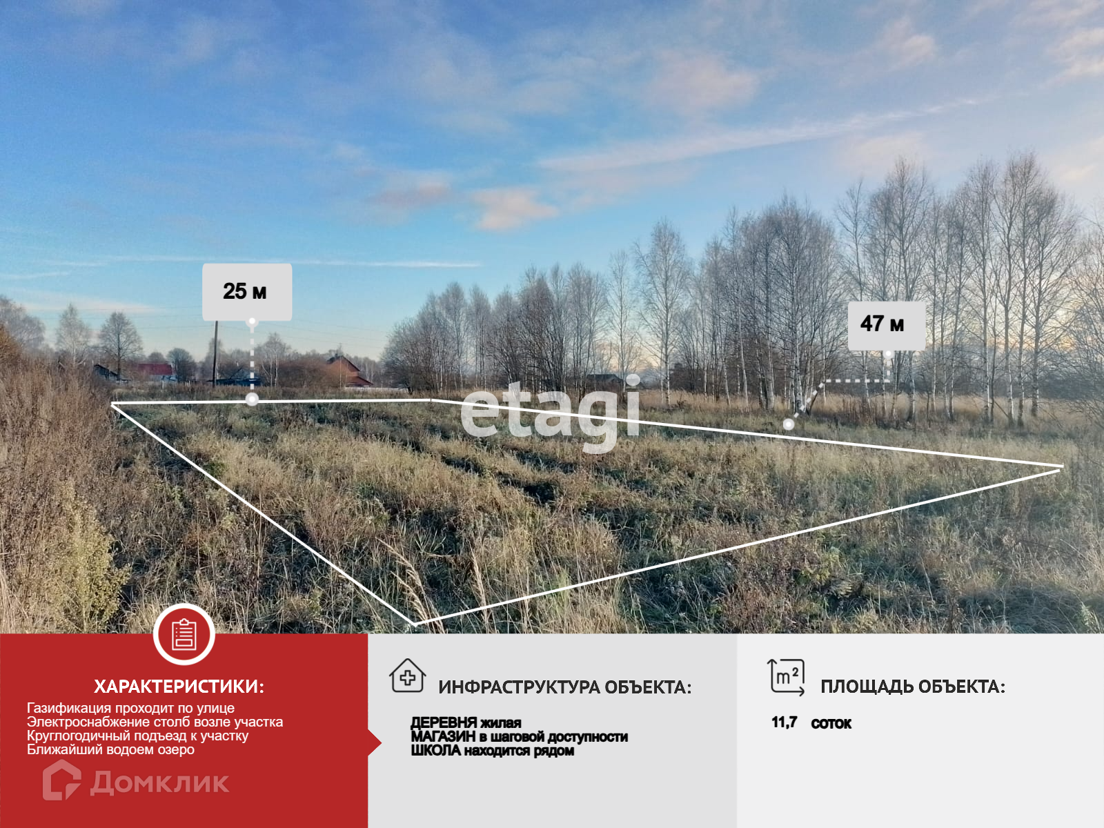 Коммуникации: свет, газ. КРУГЛОГОДИЧНАЯ транспортная доступность, деревня жилая, МАГАЗИН в шаговой доступности ШКОЛА находится рядом. Рядом лес, два озера. Отличный не дорогой вариант для приобретения и постройки ЖИЛОГО дома!!!!