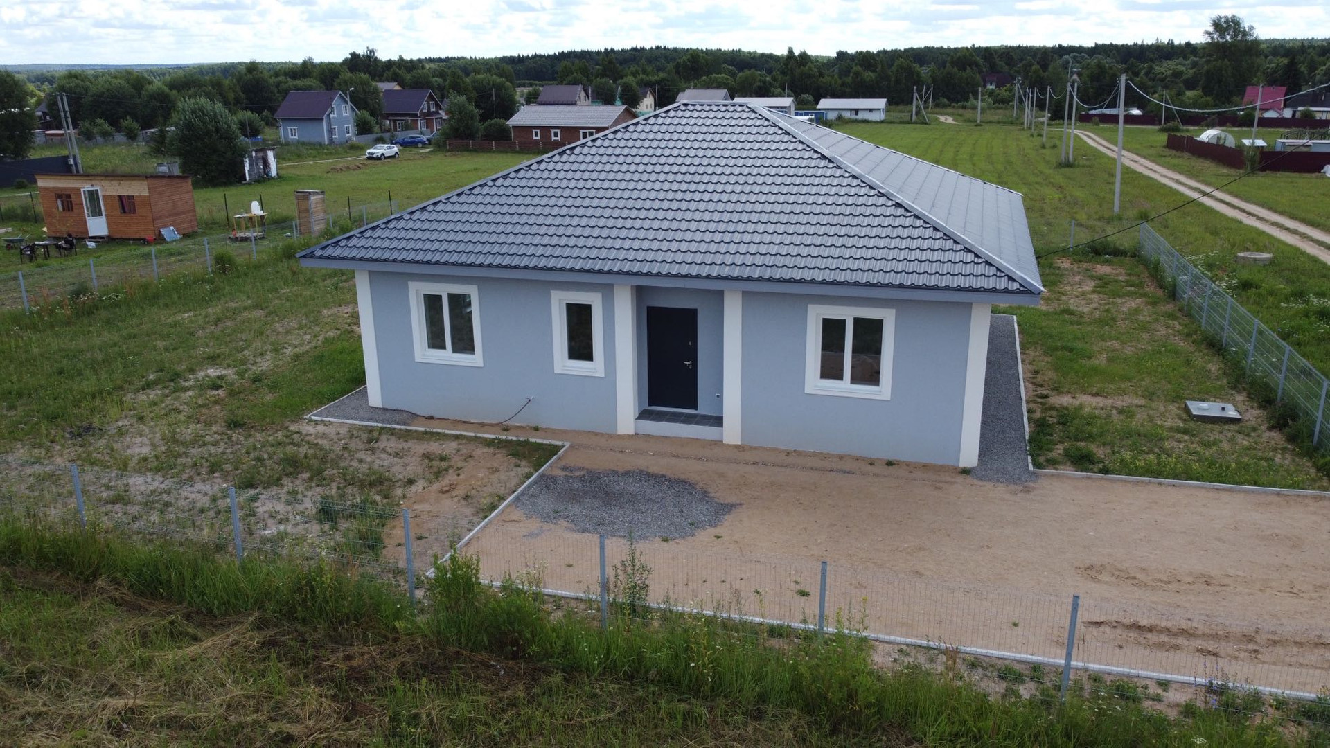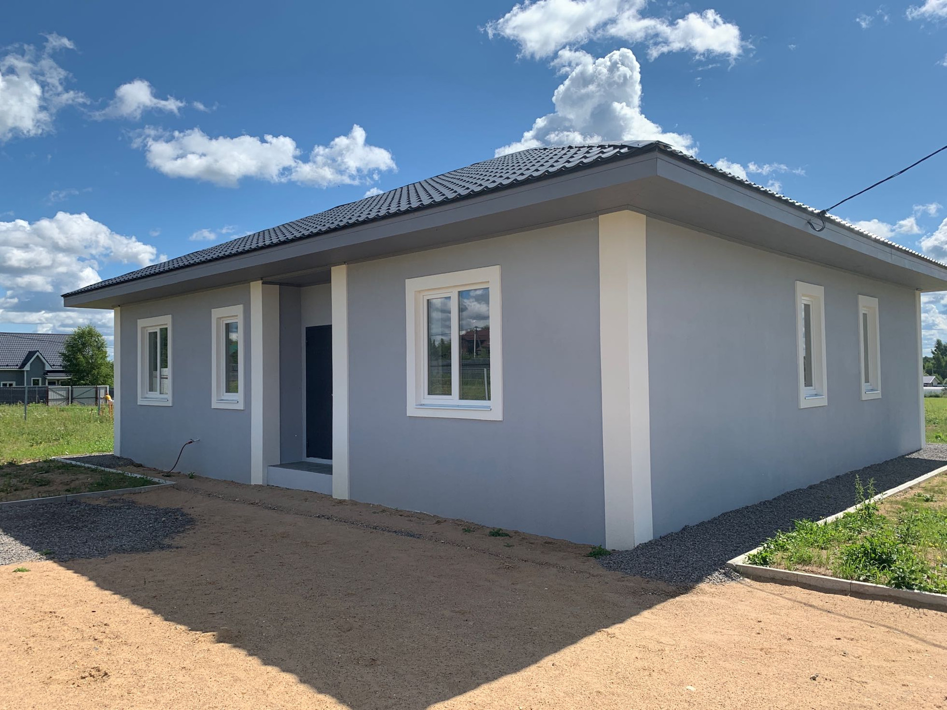 Современный комфортабельный дом, построенный по европейскому проекту. Год постройки 2022. Дом одноэтажный, построен на фундаменте из армированной плиты 30см. на песчаной подушке. Стены выложены из пеноблоков толщиной 37.5см, утеплены снаружи пеноплексом и оштукатурены. Крыша четырёхскатная вальмовая, утеплена по чердачному перекрытию. Дом имеет 3 отдельные спальни, большую совмещённую гостиную-столовую, сан узел и бойлерную. Площадь террасы 26 метров. Площадь участка 10.9 соток, ограждён забором из 3D сетки. Дом с полной финишной отделкой, отоплением,электрика, канализация полностью сделаны. Парковка на несколько машин. Посёлок находится в 2 км от трассы, полностью окружен лесом. На территории свой магазин, пляж, пруд, детские площадки. Посёлок развивается, дороги круглогодично убираются и чистятся!