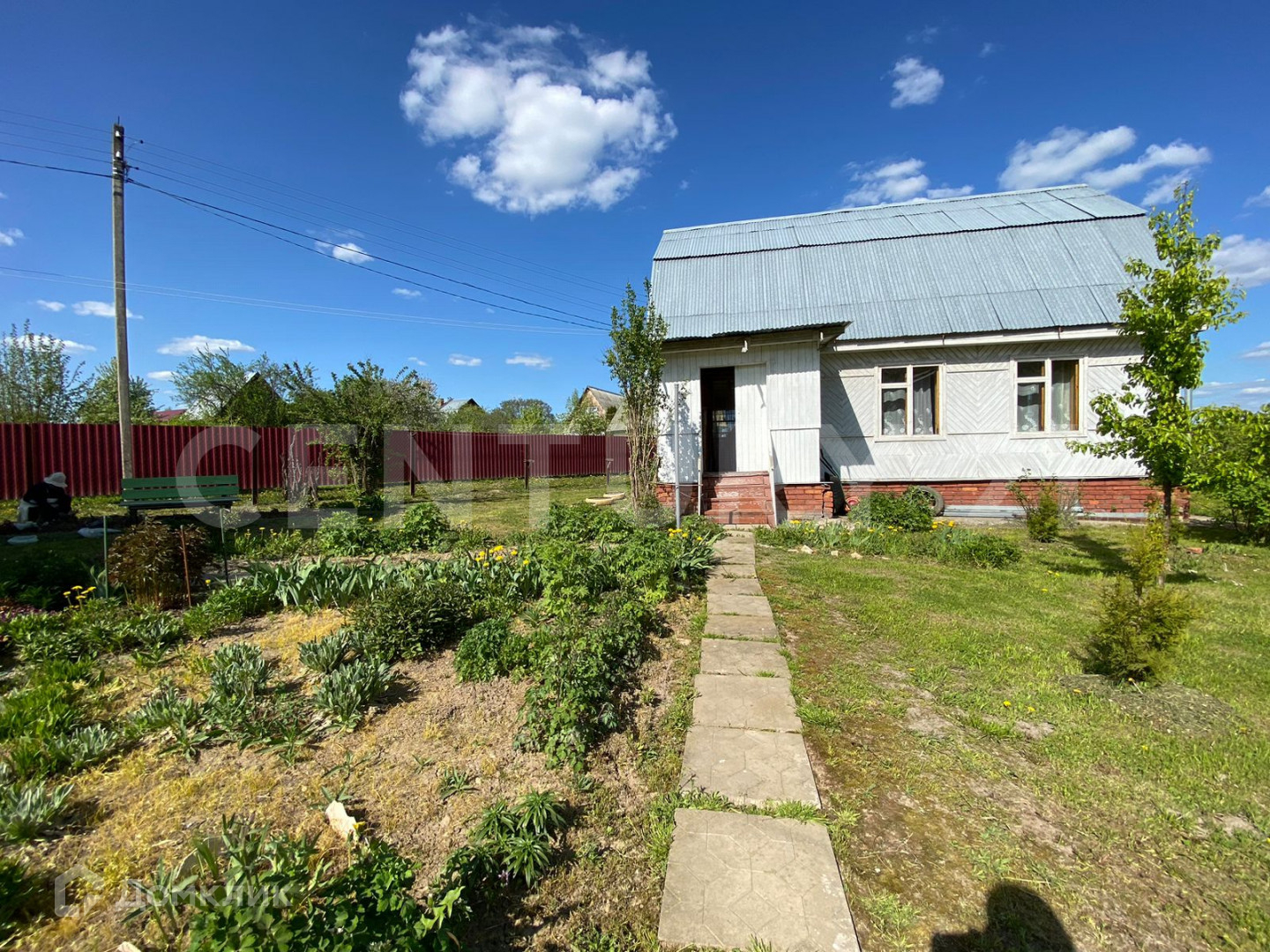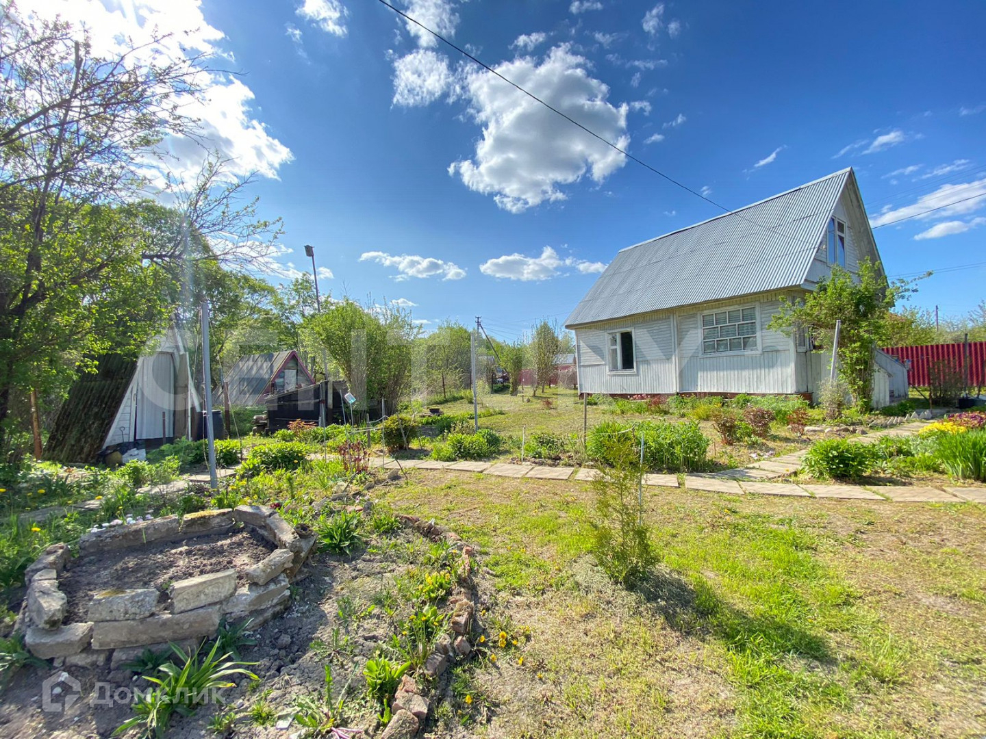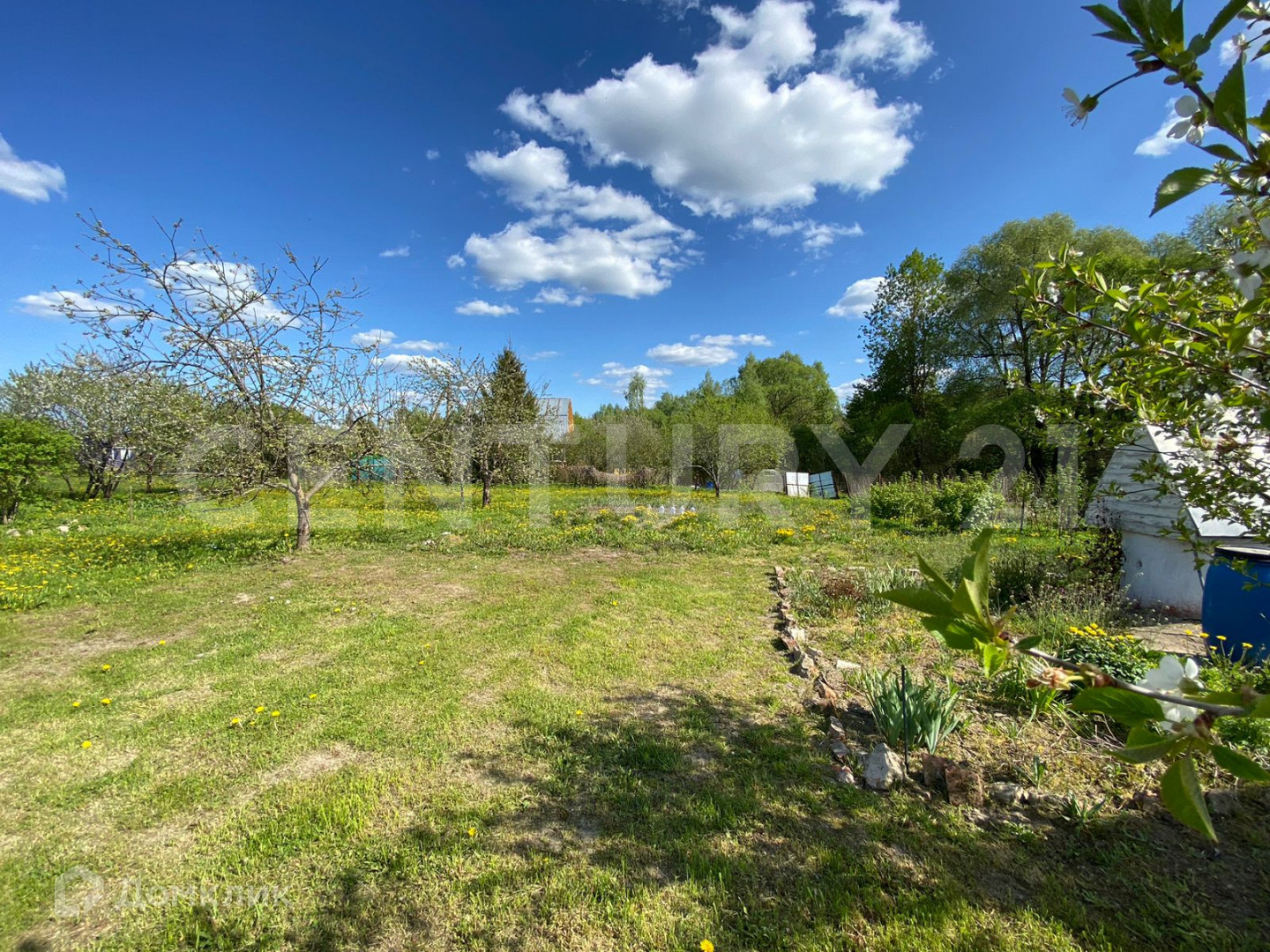 Участок (5,5 соток) правильной прямоугольной формы, огорожен: со стороны проездной дороги забор из профлиста, со стороны соседей деревянный (однородный) на металлическом столбах и каркасе, ворота въезда на участок автоматические с пульта. Участок ухоженный, выровнен, засеян газоном, посажены молодые деревья: яблони, вишни, абрикос, декоративная композиция- рокарий с "карликовыми" соснами, различных видов. На участке просторная беседка.