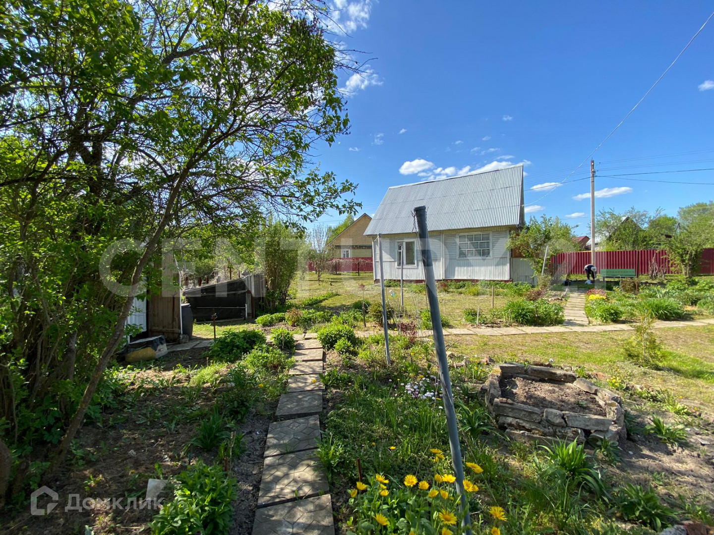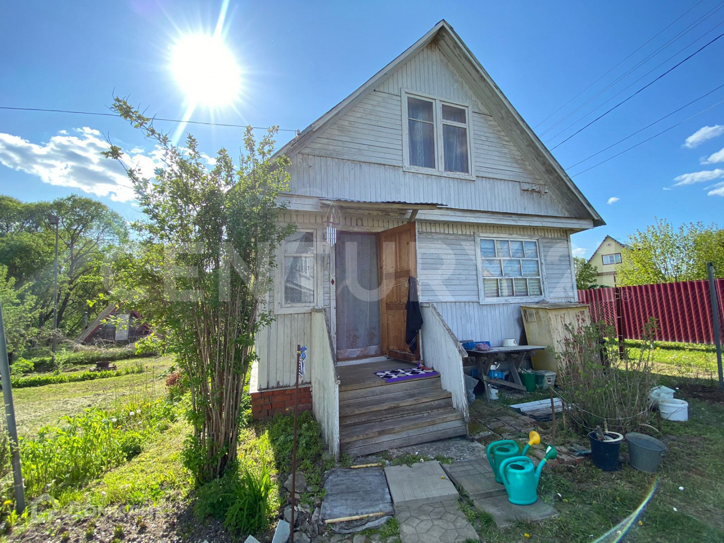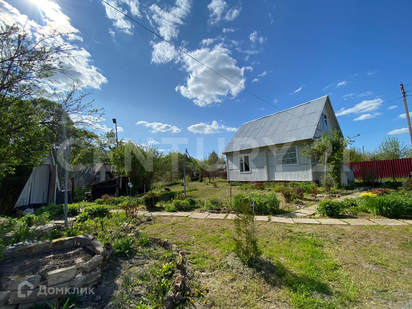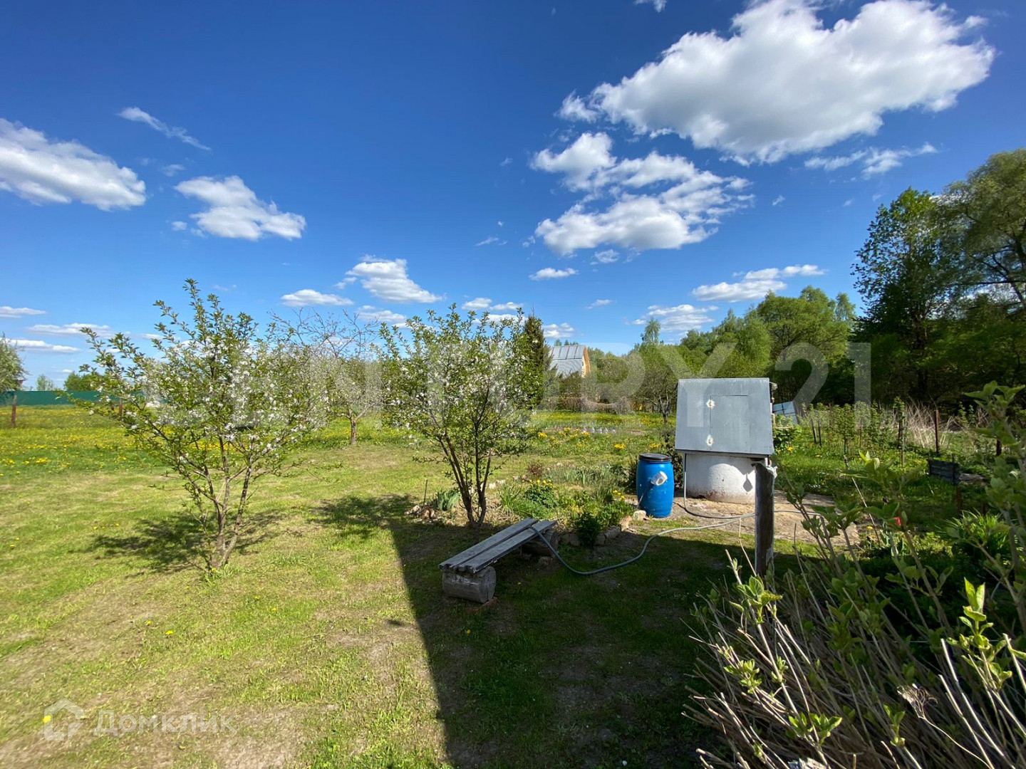 Участок (5,5 соток) правильной прямоугольной формы, огорожен: со стороны проездной дороги забор из профлиста, со стороны соседей деревянный (однородный) на металлическом столбах и каркасе, ворота въезда на участок автоматические с пульта. Участок ухоженный, выровнен, засеян газоном, посажены молодые деревья: яблони, вишни, абрикос, декоративная композиция- рокарий с "карликовыми" соснами, различных видов. На участке просторная беседка.