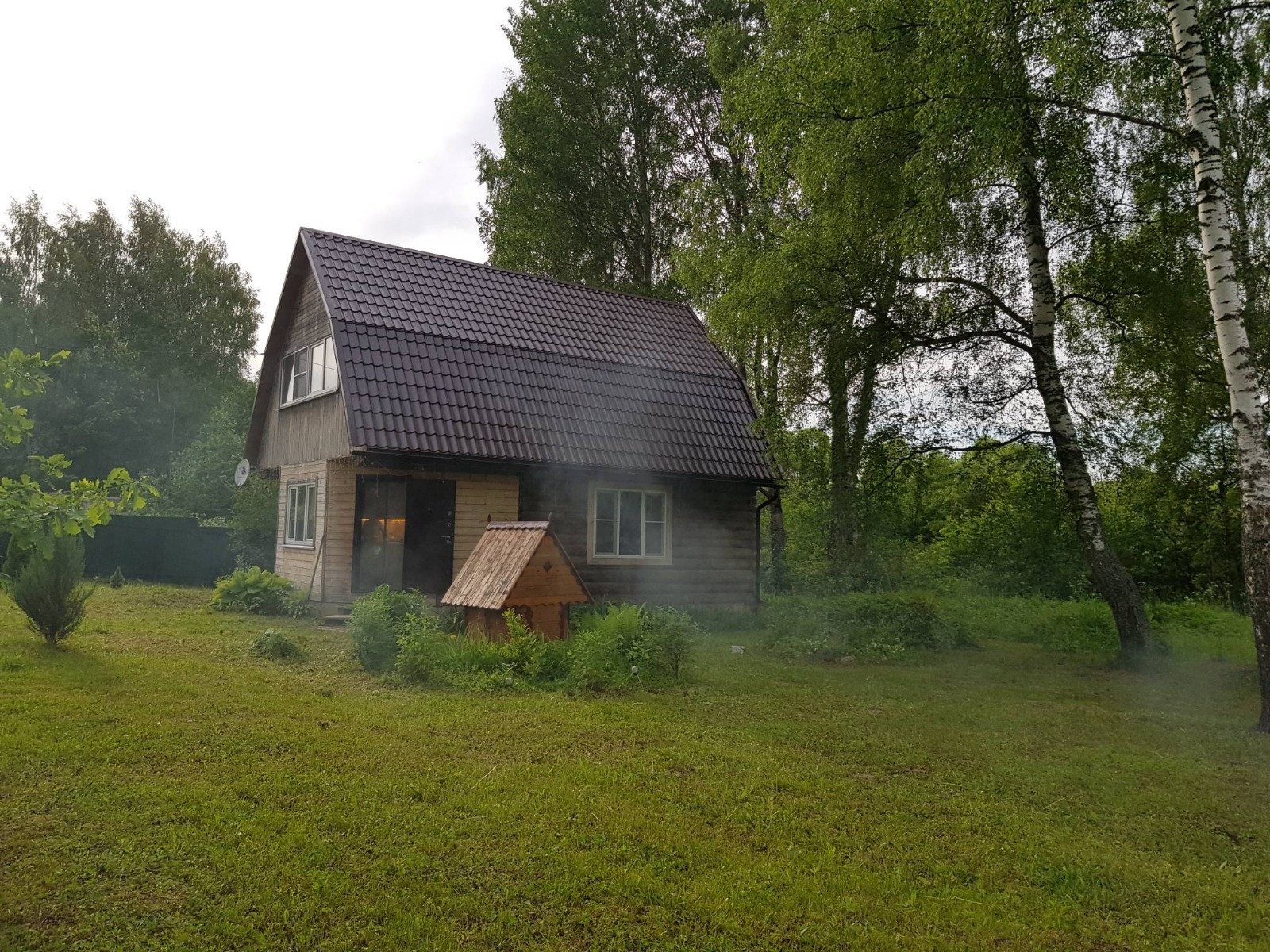 Продаётся дом-баня на участке 15 соток. Находится на краю деревни, тихое красивое место. Первый этаж бревенчатый сруб 6х6 плюс тёплая терраса, второй мансардный. На первом этаже кухня-столовая, зал, санузел, душевая и парная. На втором две комнаты. Дом используется круглый год. На участке плодовые кусты, деревья, берёзы и сарай 6х3 м. Поворот в деревню на 130 км Варшавского шоссе, от трассы 3 км хорошего просёлка.