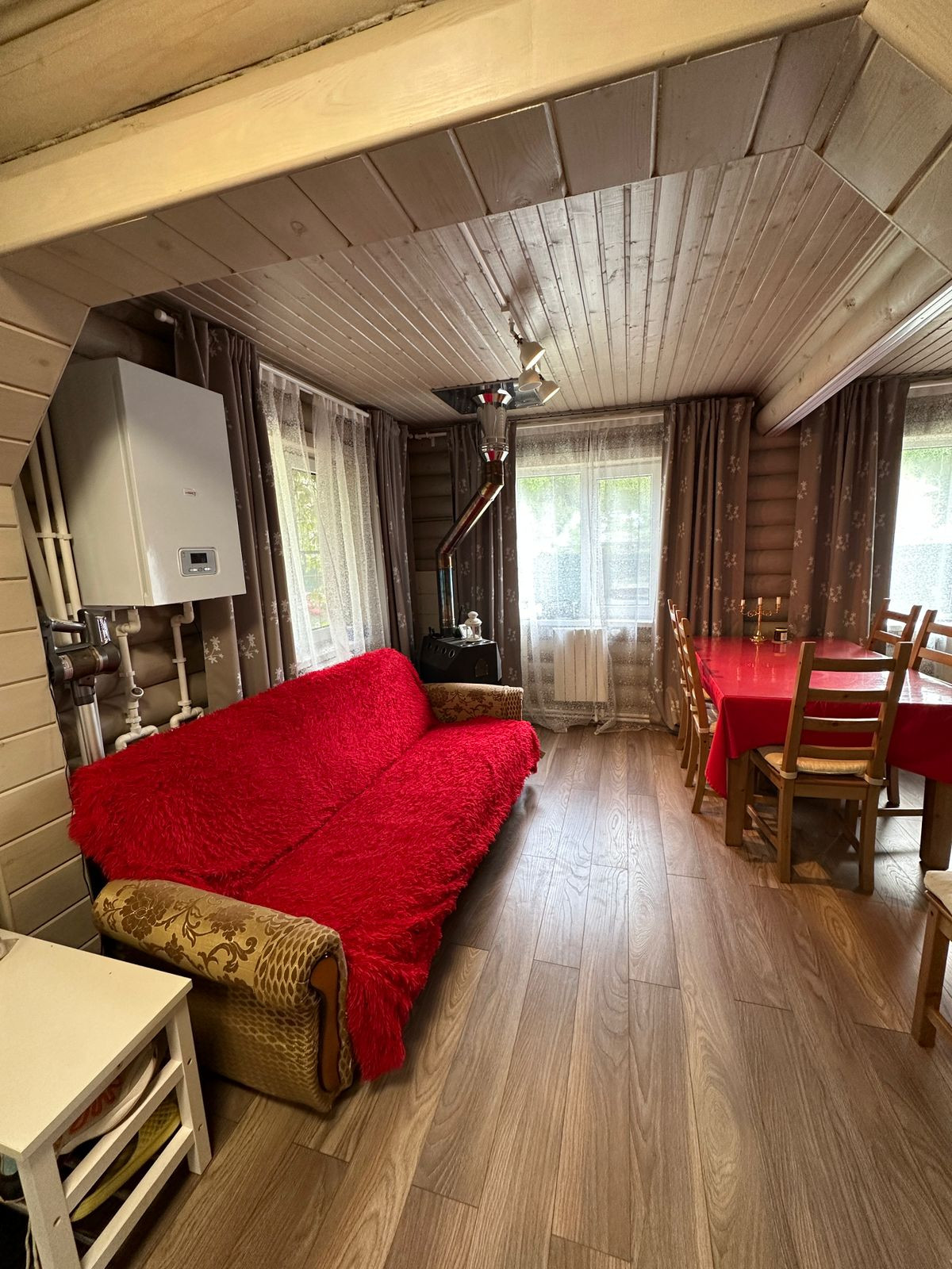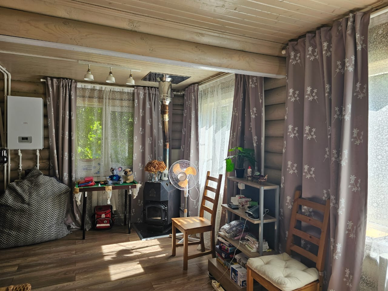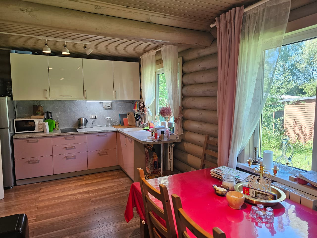 Продается дом для круглогодичного проживания. Дом стоит на ленточном фундаменте, 1 этаж из бревна, 2-ой -каркасный, утеплитель 150 см. Ремонт выполнен из дорогостоящих материалов. Вместительная кухня IKEA с встроенной посудомоечной машиной Bosh, варочной панелью и холодильником. Дом очень теплый, отапливается электрическим котлом, управление удаленное с приложения. Батареи у каждого окна, заправлены антифризом, так же можно отапливать печкой или использовать как камин.