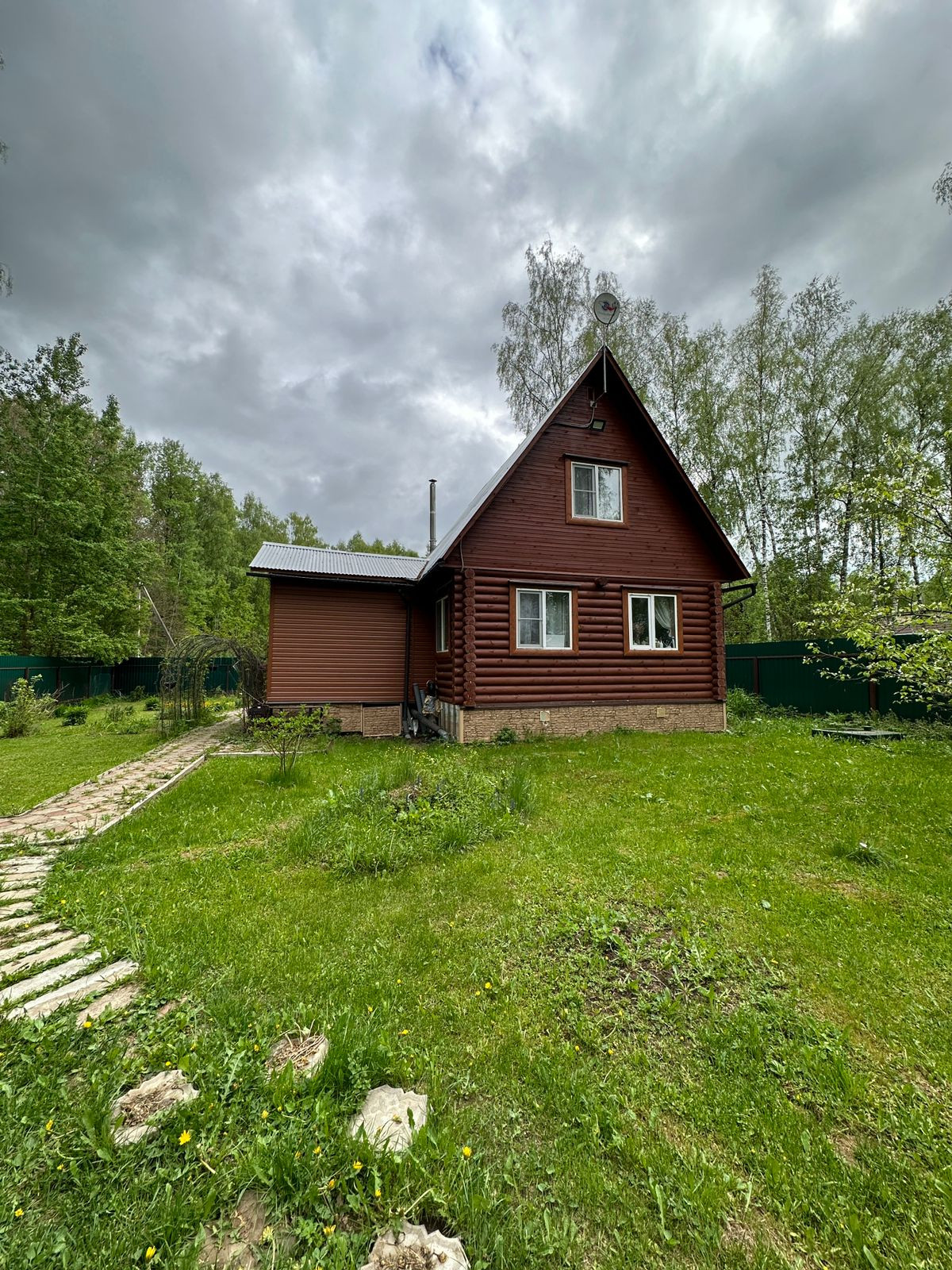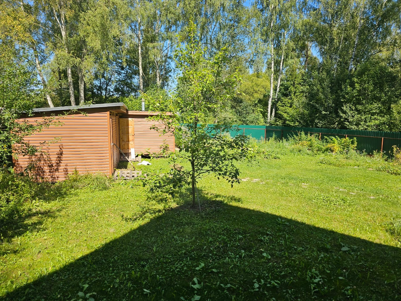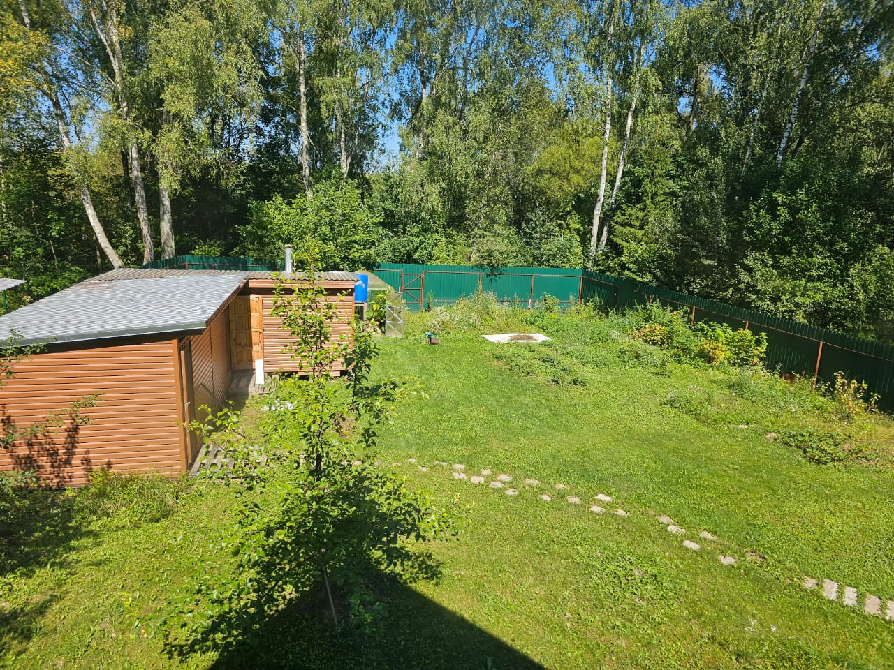 На участке растут плодоносящие деревья: яблоня, слива, груша. Есть кусты смородины, крыжовника, голубики, малины и жимолости. Высажены туи. Дом крайний, соседи только с одной стороны, рядом лес.