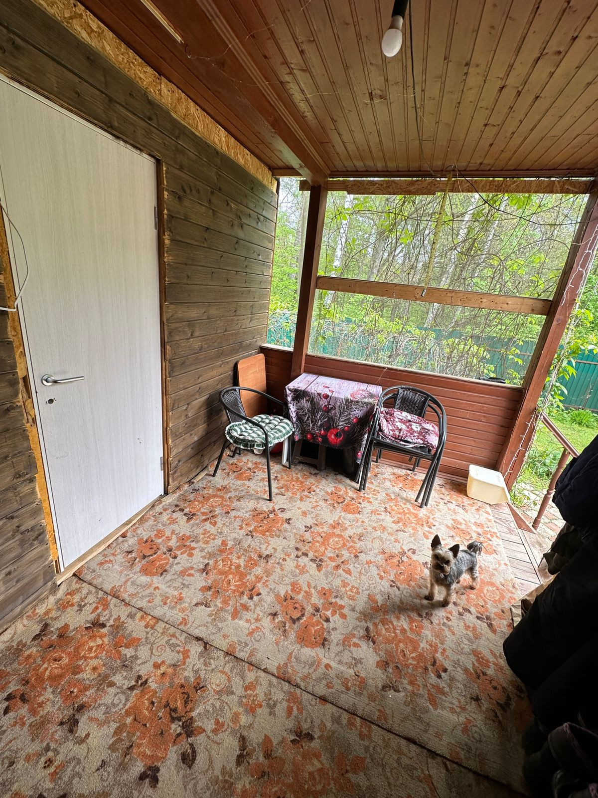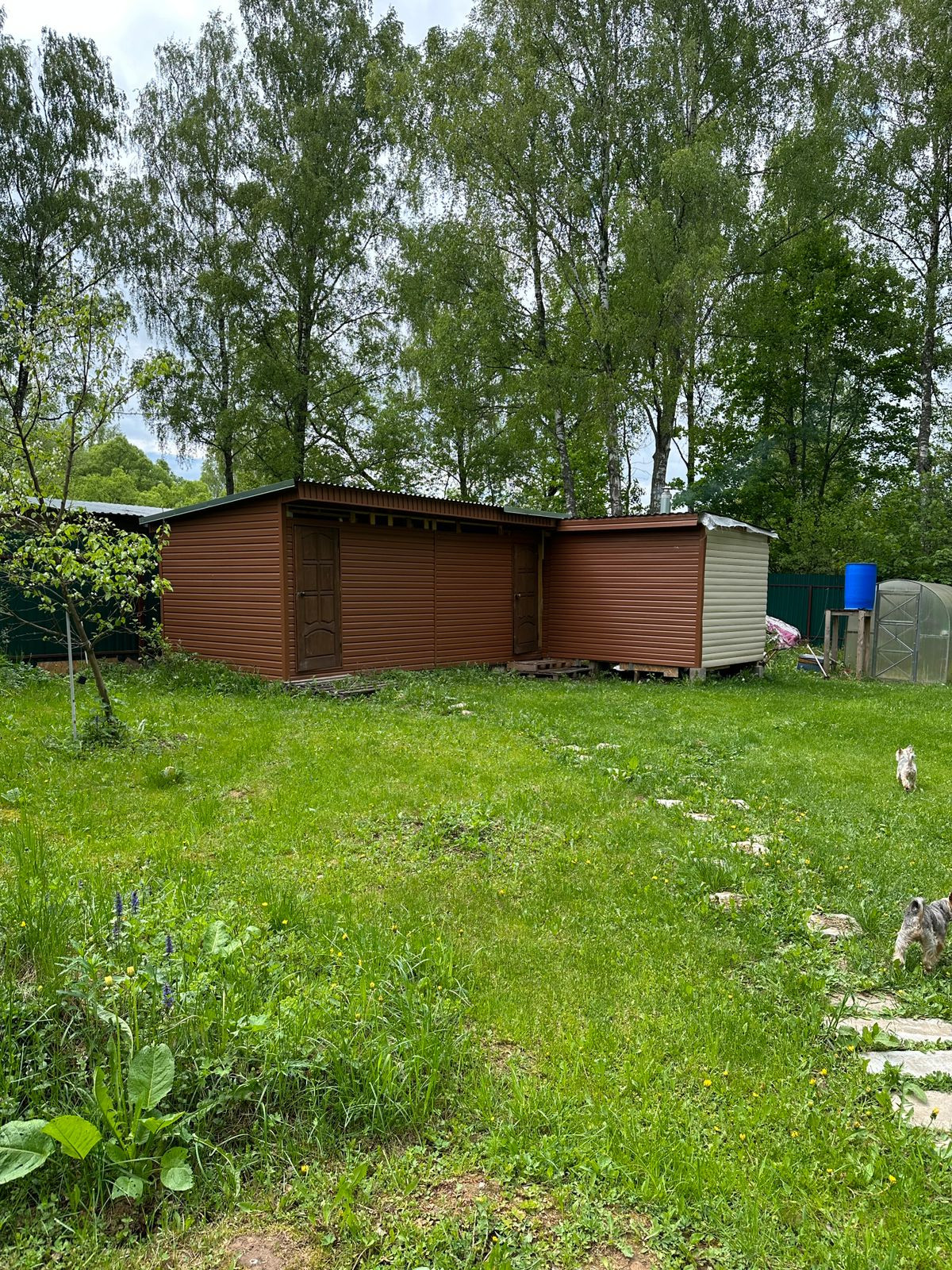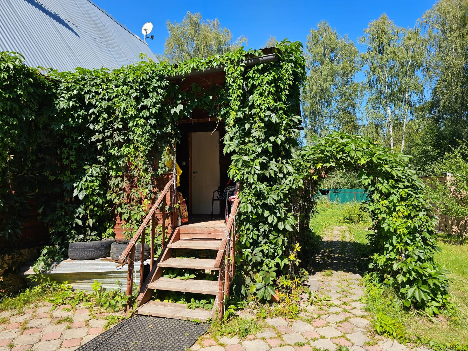 На участке растут плодоносящие деревья: яблоня, слива, груша. Есть кусты смородины, крыжовника, голубики, малины и жимолости. Высажены туи. Дом крайний, соседи только с одной стороны, рядом лес.
