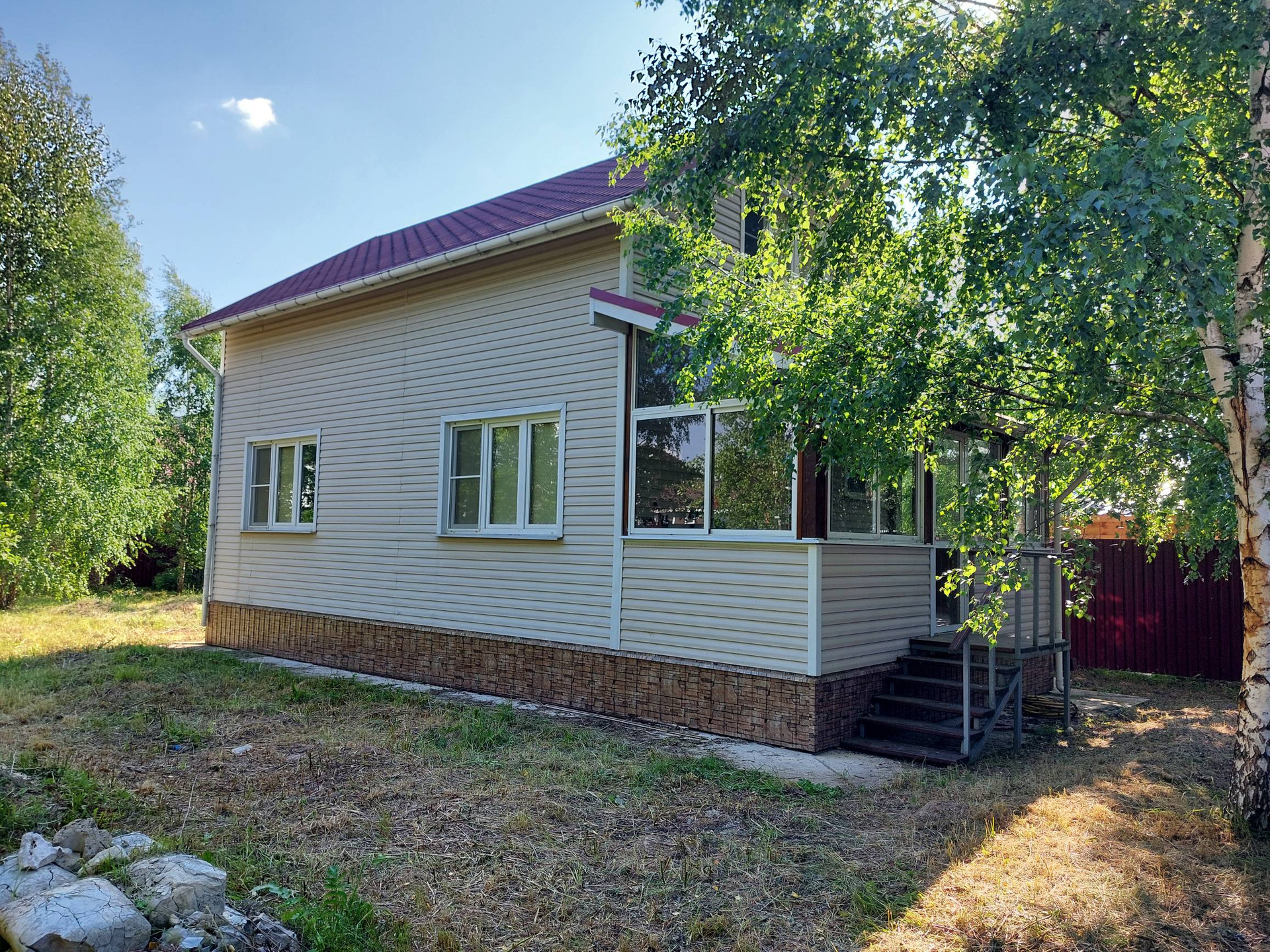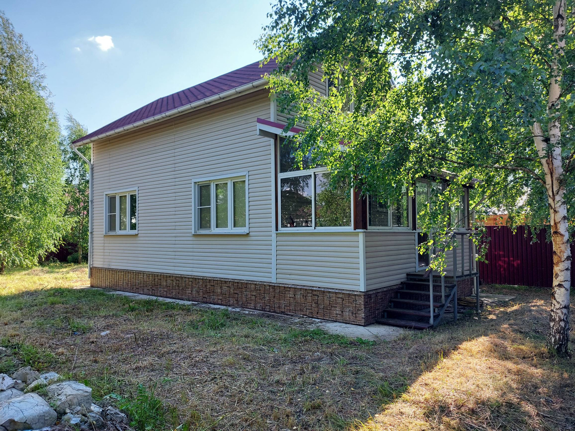 Продам отличный жилой дом 120 кв.м. Дом 2019года постройки строился для себя качественно, дом сиб- панели, фундамент свайный трех метровый двойной обвязки, полностью утеплен и готов для круглогодичного проживания, утепление: полы, потолок, крыша 200мм-плиточный утеплитель, стены 170мм с хорошей, современной планировкой, эл-во - 380 В, 15 кВт, вода- Скважина ( подключена и заведена в дом), канализация-септик. Планировка: 1-й этаж: коридор, просторная кухня-гостиная, спальня, сан/узел, бойлерная. Выход на большую застекленную веранду. 2-й этаж: 2 спальни, помещение для гардеробной или дополнительного санузла. Участок ровный 10 соток очень красивый с молодыми березками, ровной квадратной формы, огорожен хорошим забором и мощными воротами из проф. листа. Участок был выровнен. Назначение участка для жилой застройки. Хорошая транспортная доступность. Все соседи давно построились и проживают круглогодично. Вся инфраструктура в доступности школа, детский садик, сетевые магазины. Отличное место для отдыха и постоянного проживания. Дом и участок оформлены согласно законодательству РФ, подходят под любой вид расчета. Один взрослый собственник.
