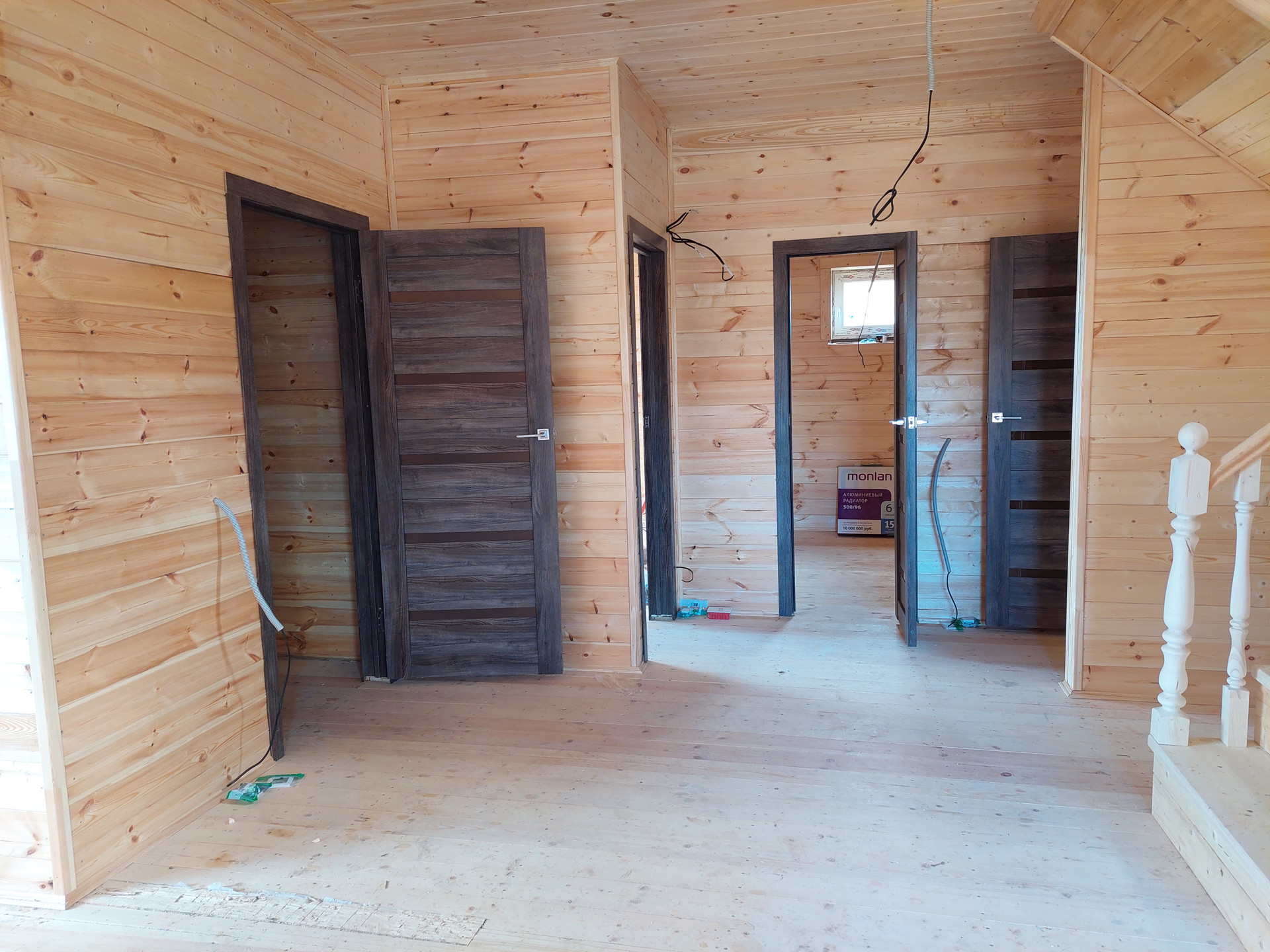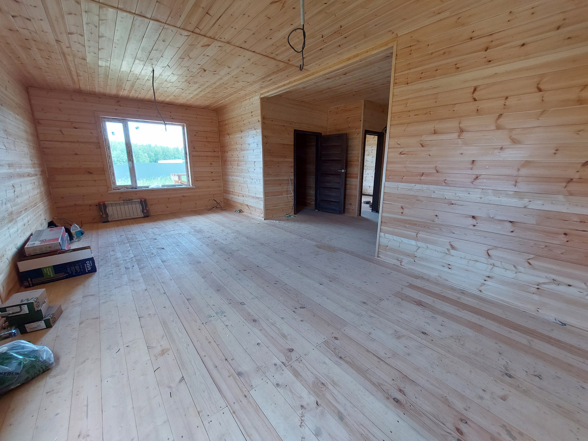 Коммуникации: индивидуальная скважина, септик, электричество 15 кВт, электрический котёл, разводка отопления по дому. Все выводы под сантехнику сделаны. Газ по границе, оплачен, можно подключить. Проводной интернет.