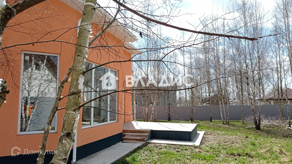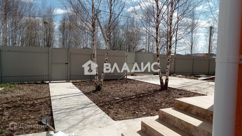 Участок – 10 соток, ИЖС, огорожен забором из профилированного металла, отмостка дома, а также парковка и дорожки отлиты из бетона.  На участке растут молодые березы, что придает ощущение уюта и зеленого леса.