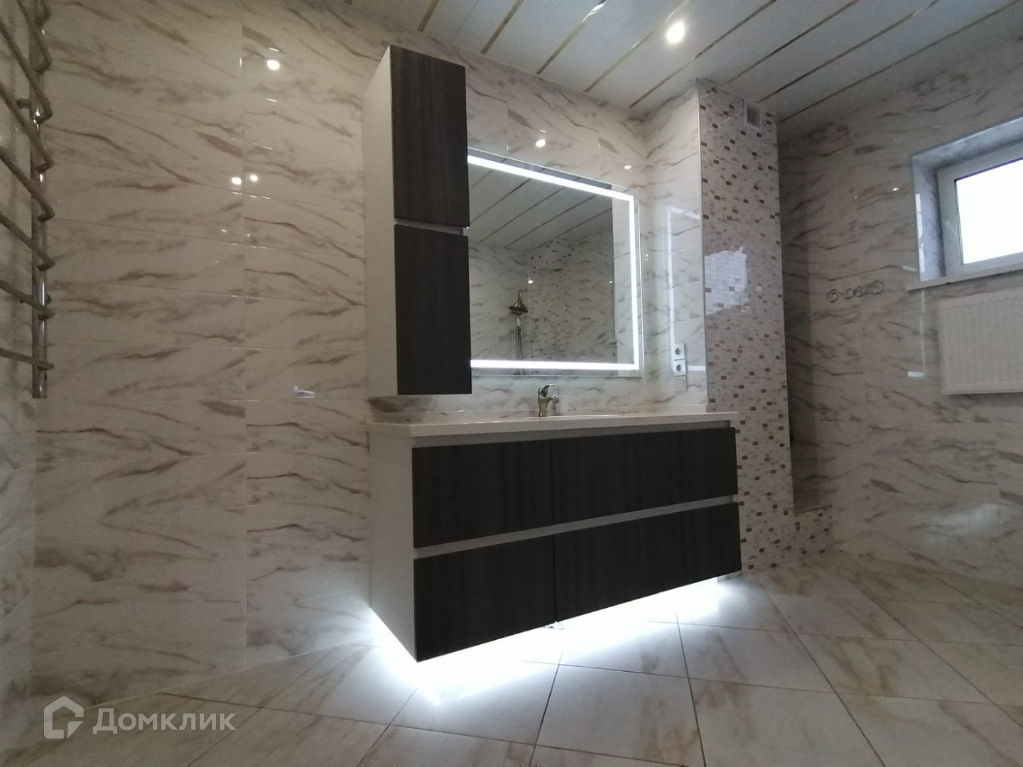 На первом этаже, большой зал-гостиная, высота потолков 2,95, в которой можно проводить любые праздники, банкеты, корпоративы, отдельная кухня с гарнитуром и бытовой техникой Кёртинг . По всему первому этажу полы керамогранит с подогревом, потолки гипсокартонные с подсветкой. Совмещённый санузел с ванной джакузи, бойлерная.