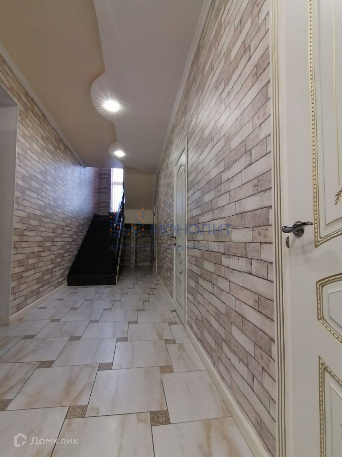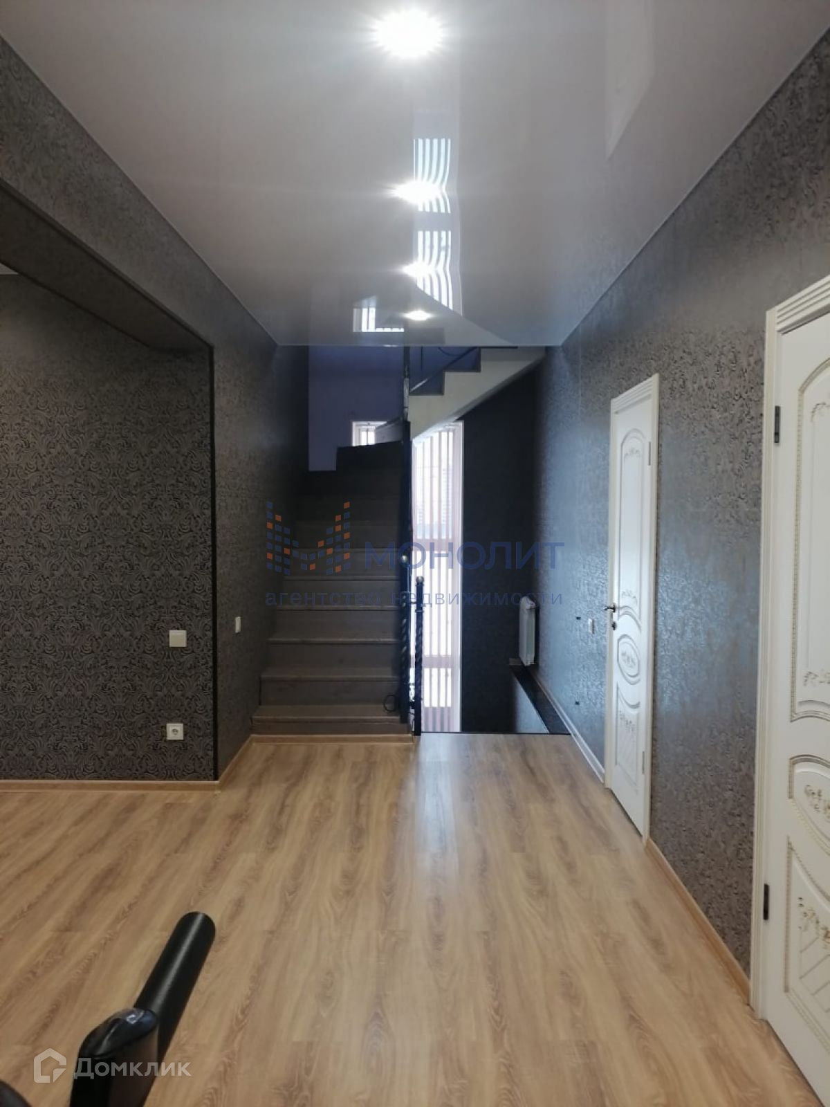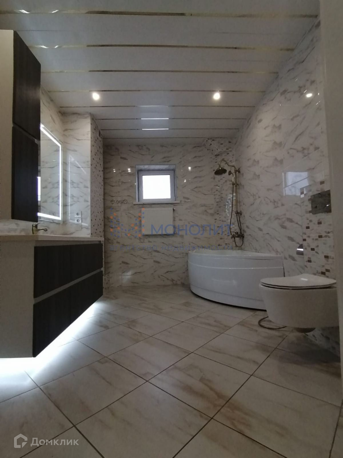 На первом этаже, большой зал-гостиная, высота потолков 2,95, в которой можно проводить  любые праздники, банкеты, корпоративы, отдельная кухня. По всему первому этажу полы керамогранит с подогревом, потолки гипсокартонные с подсветкой. Совмещённый санузел с ванной джакузи, бойлерная.