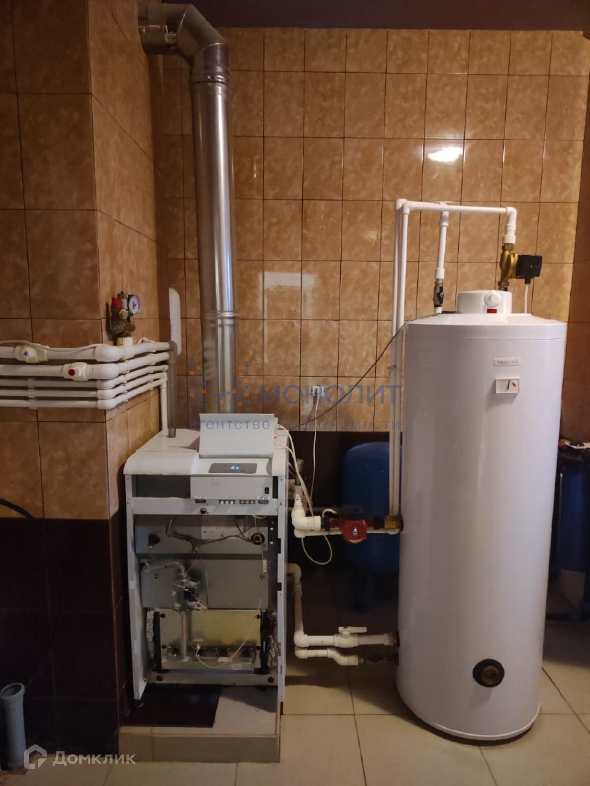 Основание дома  свайно- ленточный фундамент, толщина 300мм на глубину 2 м, толщина ленты 50 см. Залита монолитная плита по фундаменту толщина 20 см. Двойное армирование. Кровля метало/черепица- Грандлайн 200мм. Цоколь -  камень. Кровля - метало/черепица- Грандлайн 200мм. Свет 15кВт., газ (газгольдер).  Магистральный газ подведён до забора и оплачен. Скважина - глубина 45 м, Септик Топаз.