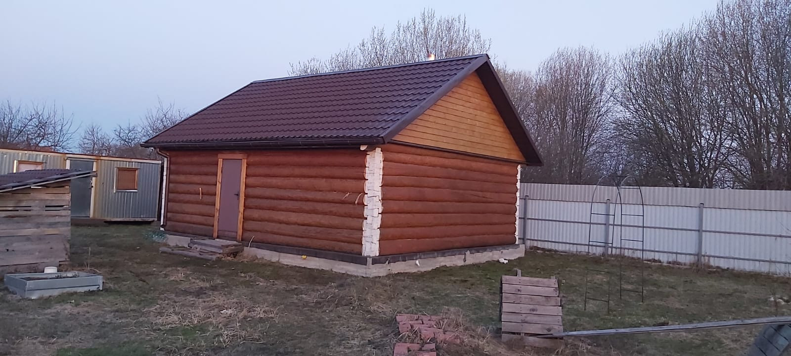 На участке также имеется баня 7х8, комната отдыха 24 кв.м, парилка 12 кв.м., 2 бытовки, дровяник, мангал, биотуалет. Завезена брусчатка для дальнейшей укладки дорожек.