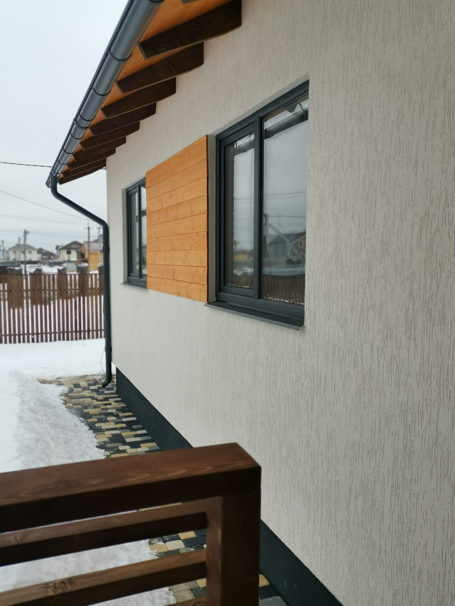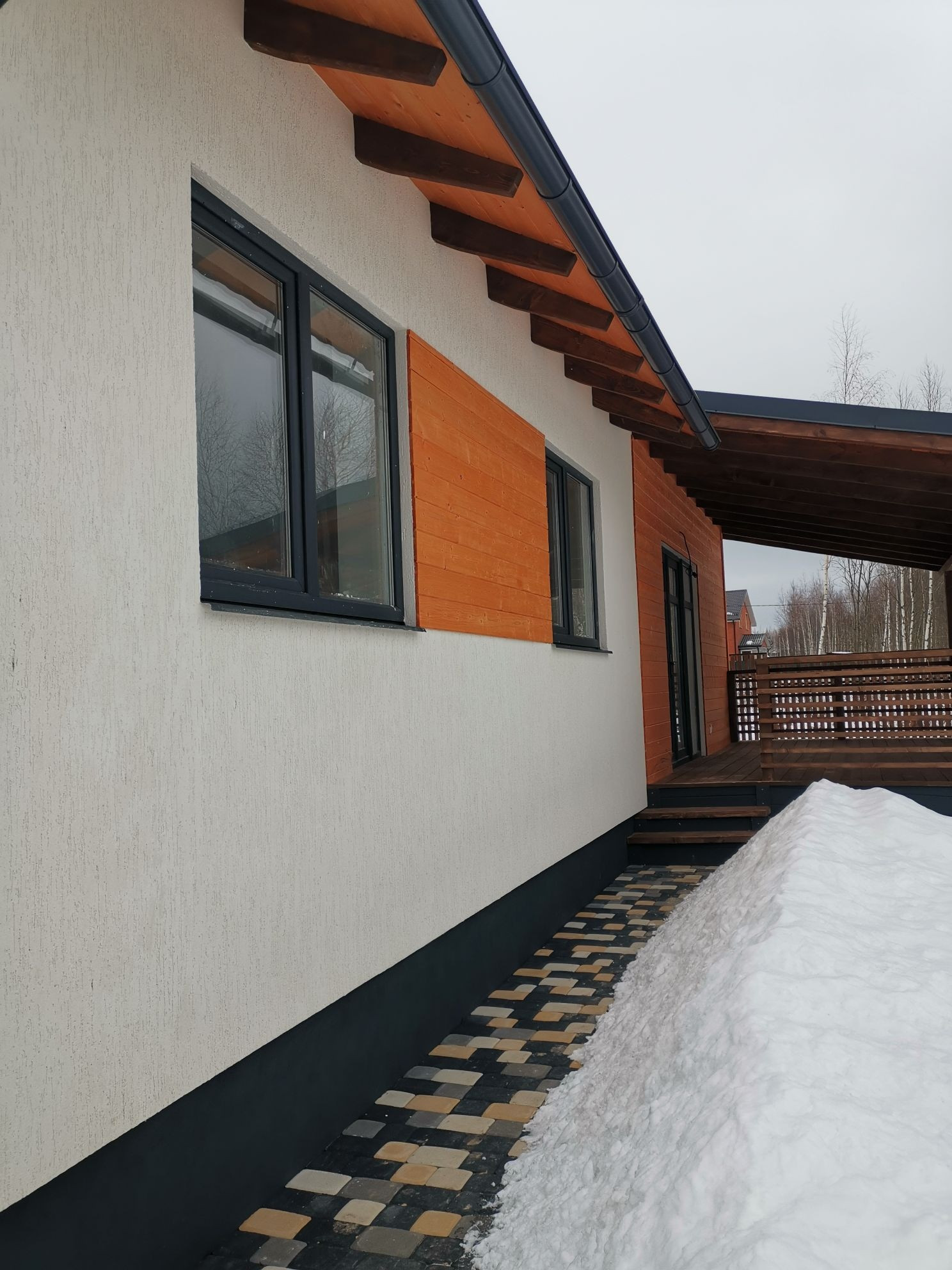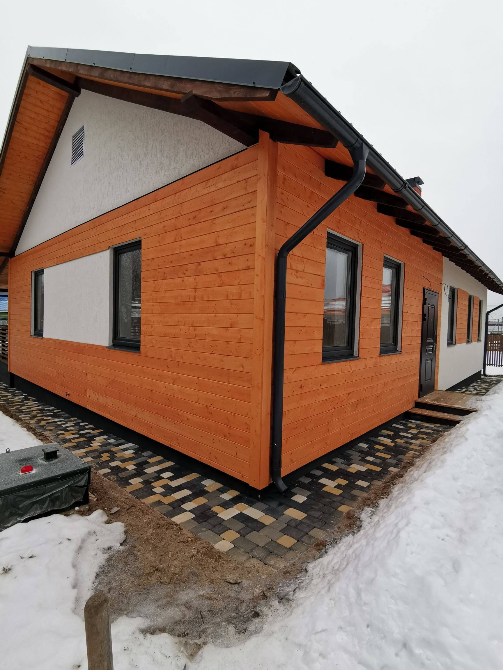 В цену входит: дом под ключ, забор по периметру с откатными воротами, отмостка вокруг дома, дорожка к дому, стоянка на 2а авто выложена из брусчатки.
