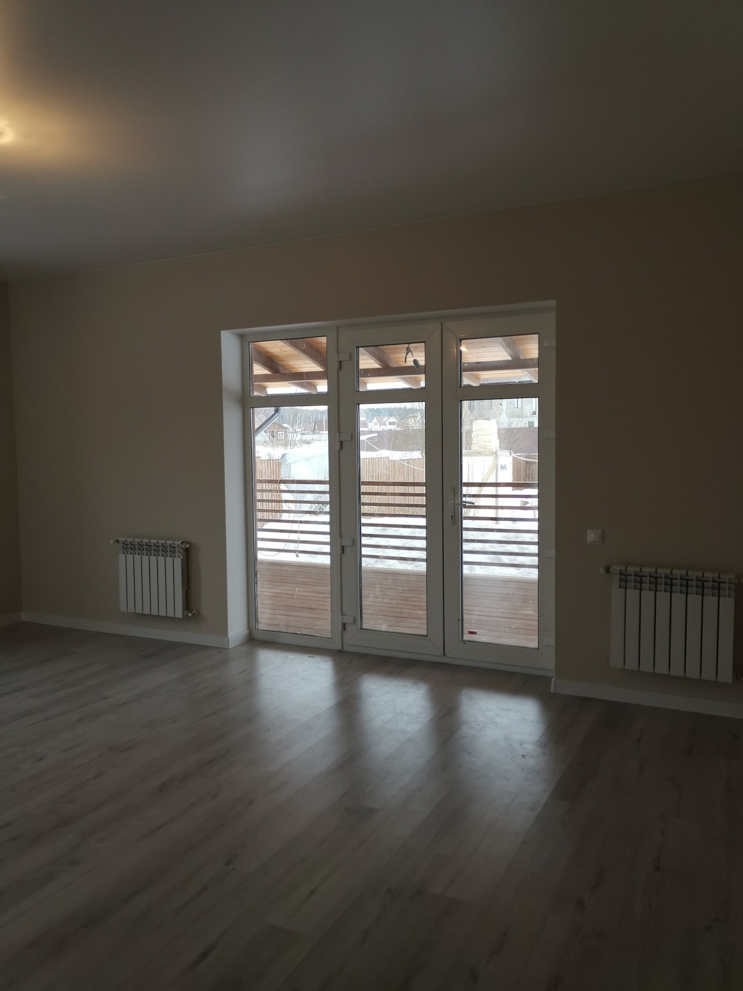 В доме 3 изолированные просторные комнаты, прихожая, бойлерная, кухня с гостинной с выходом на веранду.