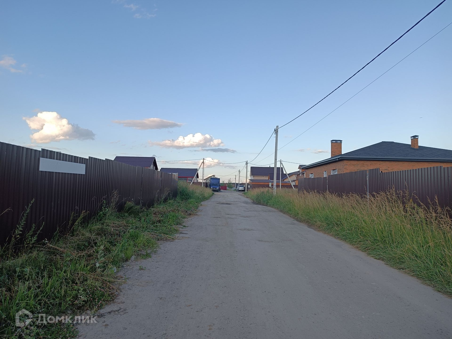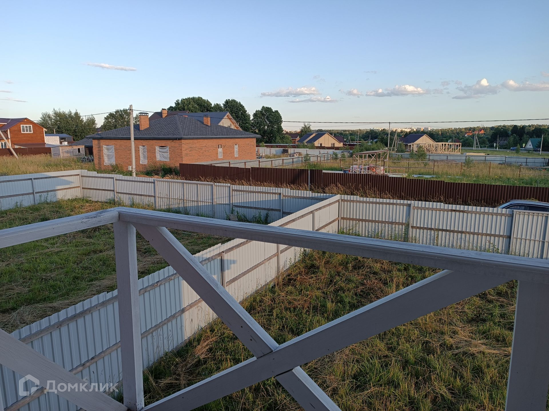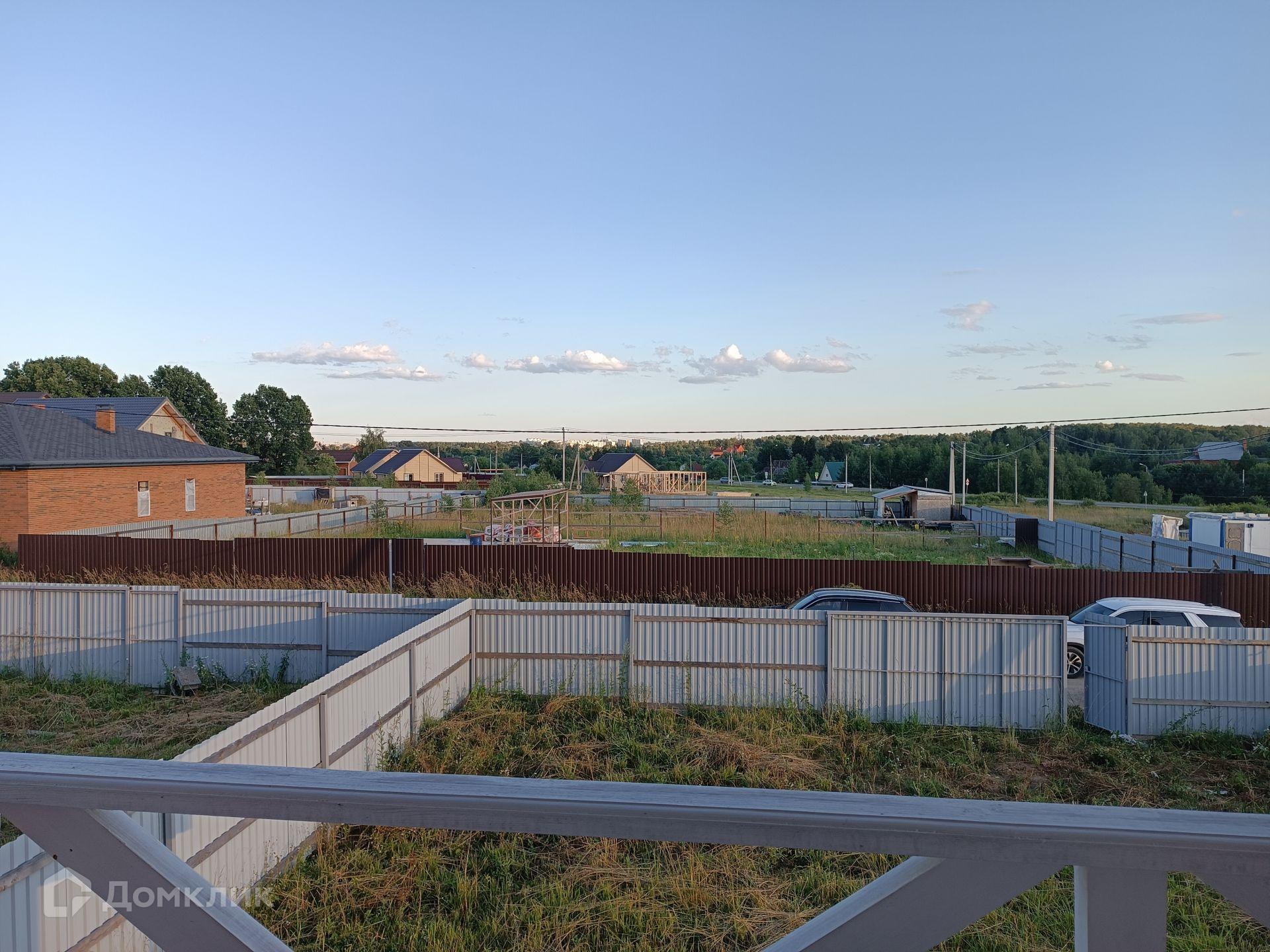 Участок ровный и сухой, правильной прямоугольной формы, со всех сторон огорожен забором из профнастила.