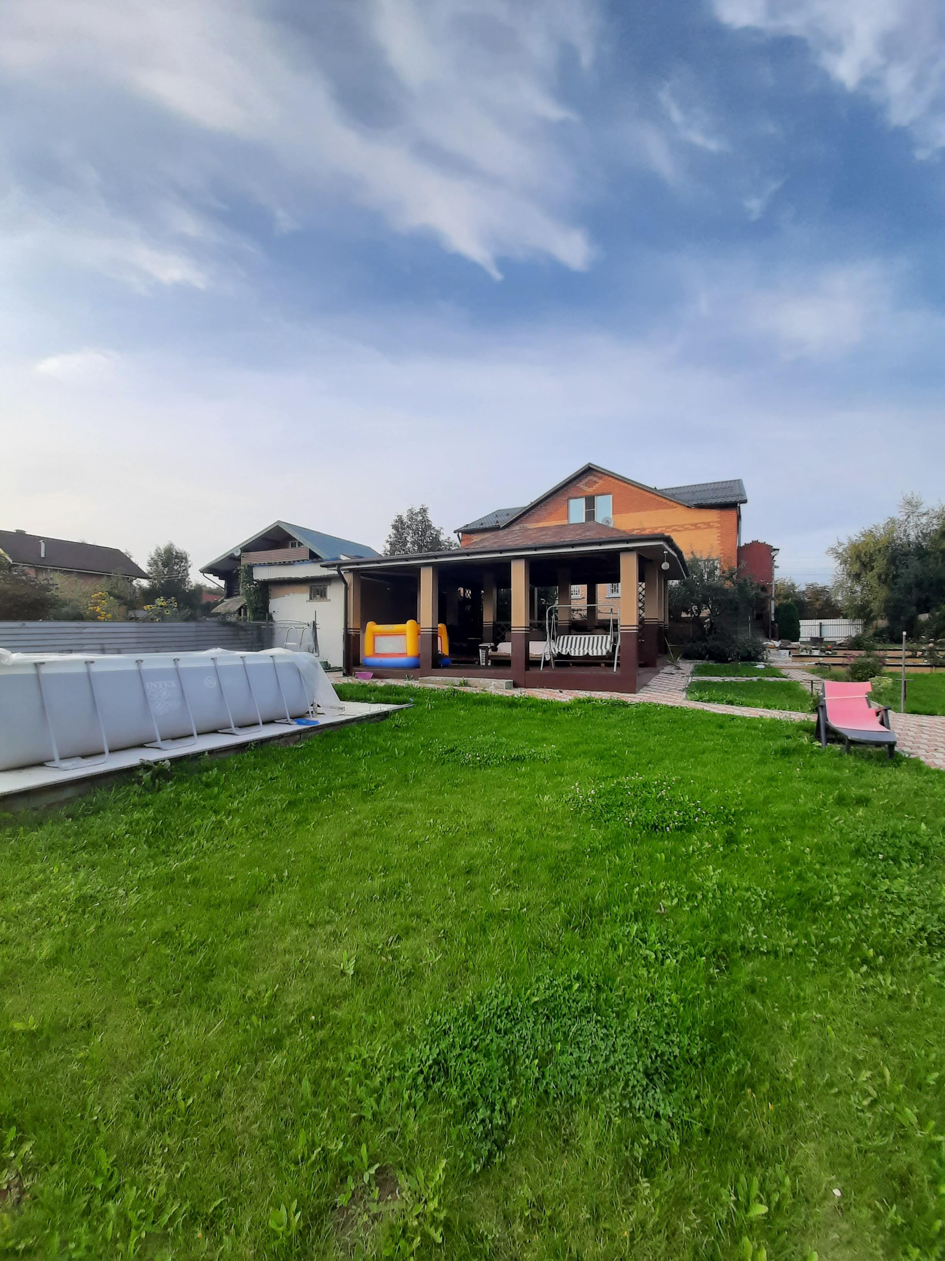 На участке сосны, ели, кипарисы и туи. Плодовые деревья и кустарники ,клубника,мангал,казан-печь. Есть помост для бассейна . С мая по сентябрь аренда - 100000. С мая по октябрь -90000